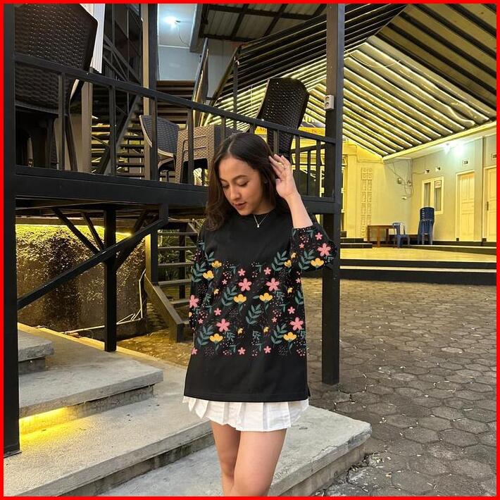 Flowly Long Shirt Atasan Wanita Bunga Flower Combed 24s By Ummiali