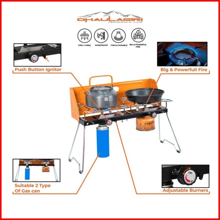Camping Stove Twin Burner With Grill Plate Dhaulagiri