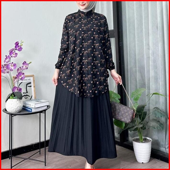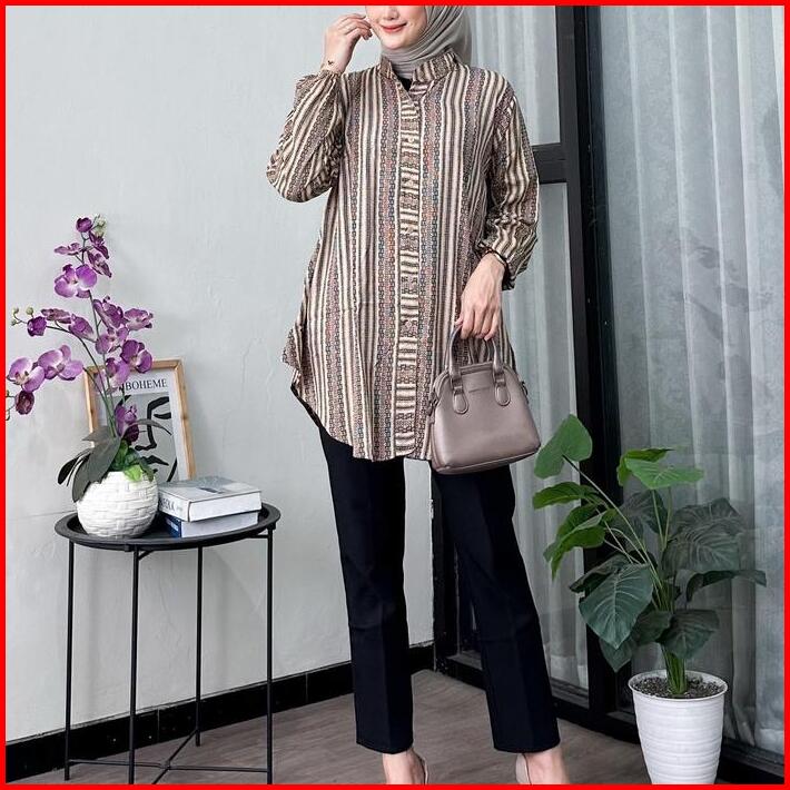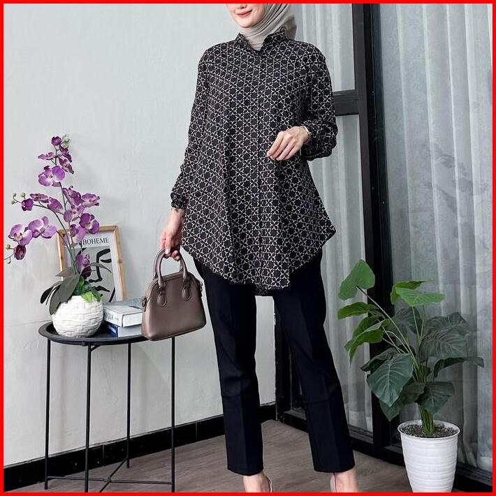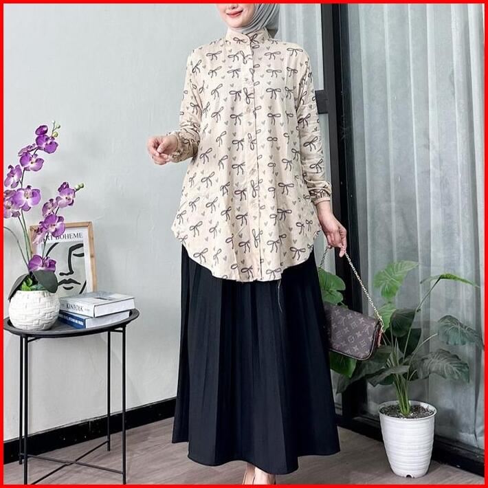Blous Rayon Butik Full Kancing Aktif Model Kerah Shanghai Ukuran Oversize. Baju Blous Wanita Muslim.