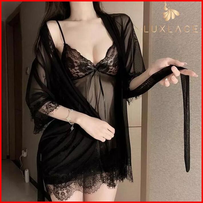 Luxlace Satu Set Sexy Lingerie Kimono Transparan Baju Tidur Sexy Wanita Sleepwear Wanita 022 Dewasa Renda Dress