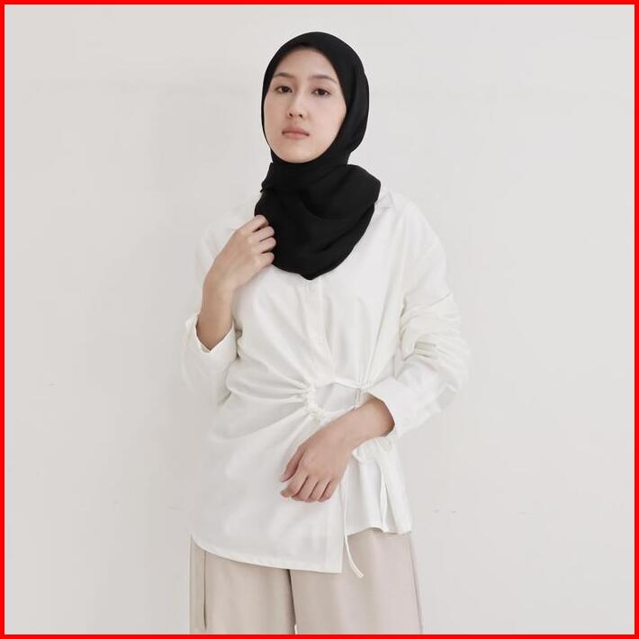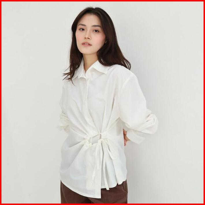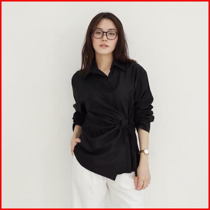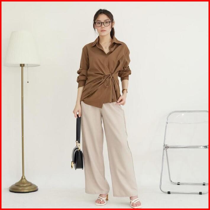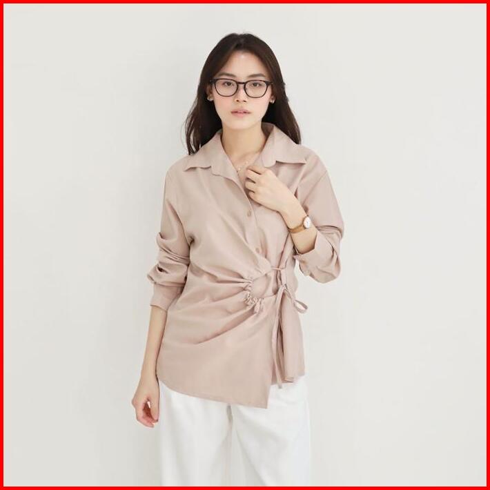Msmo Karis Assymetrical Shirt Blouse Wanita Basic Kemeja Wanita Casual Brown Grey