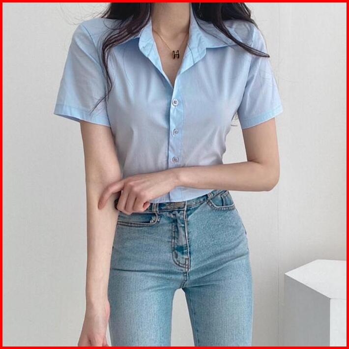 Kemeja Stretch Pas Body Wanita Lowi Shirt Kemeja Crop Kemeja Wanita Terbaru 2024 Kemeja Putih Pendek Viral