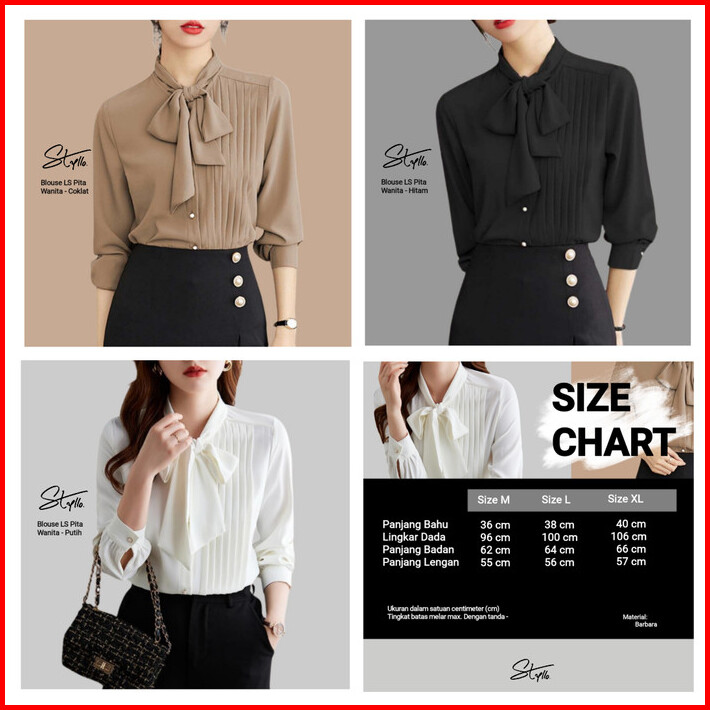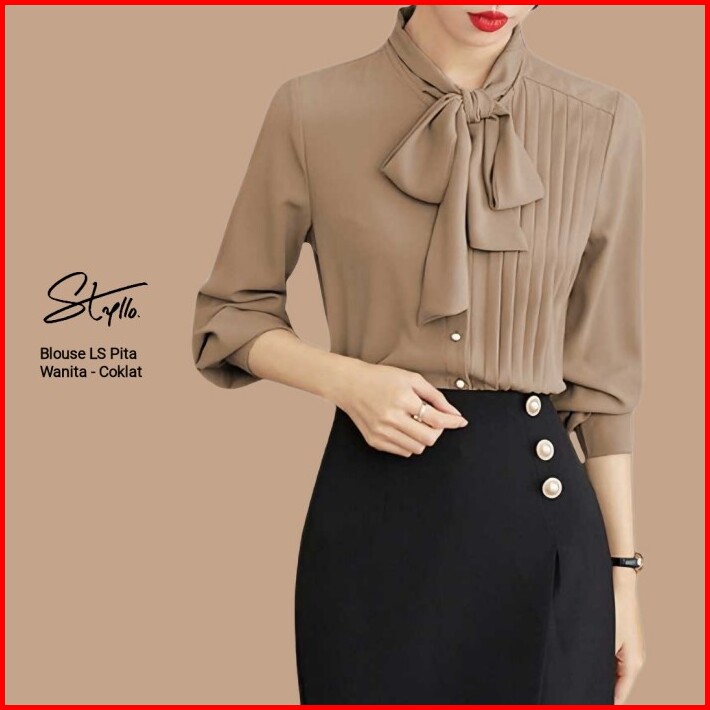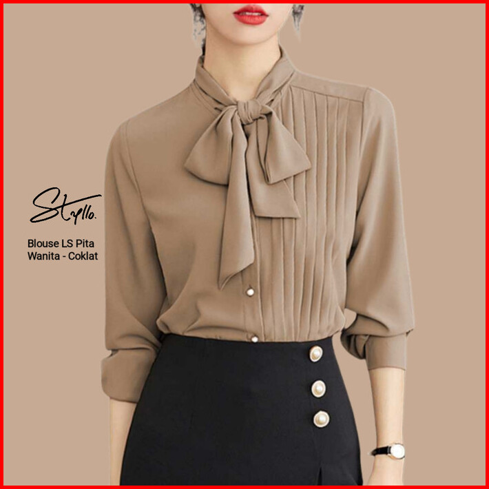 Kemeja Lengan Panjang Syall Wanita Silk Side Pleat Seam Folds