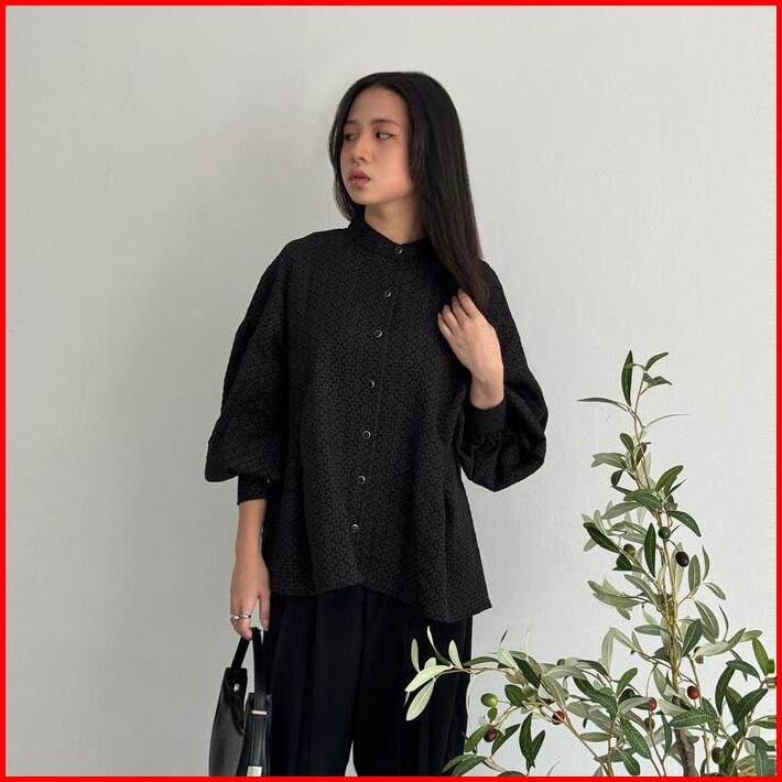 Alaia Top Atasan Wanita Casual Puffy Sleeves Blouse Lengan Balon Textured Fabric Gracias Label