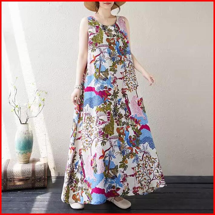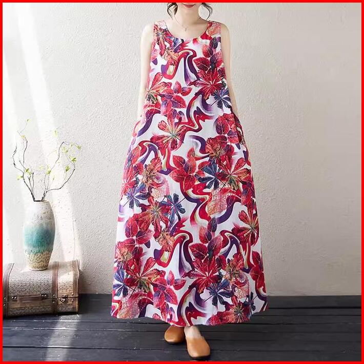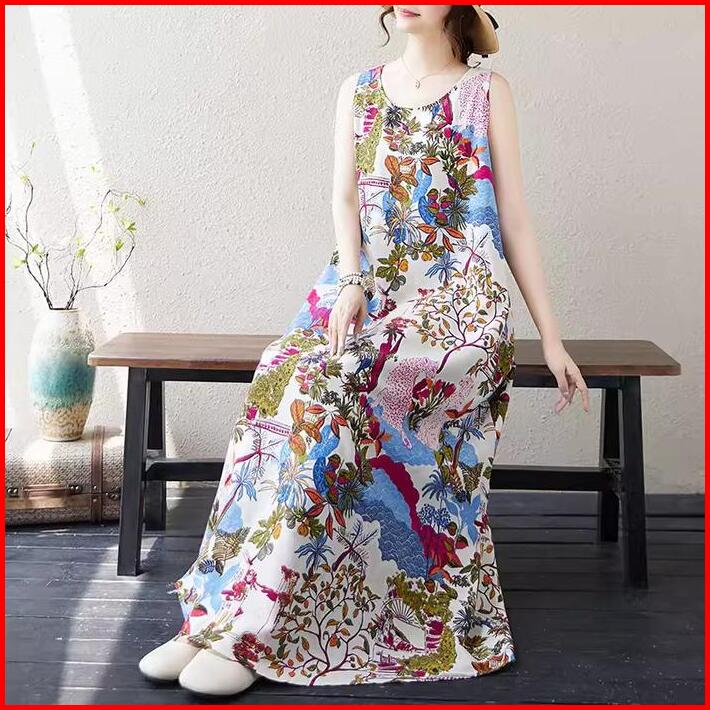 Lc1564 Floral Dress Tanpa Lengan Fashion Terbaru