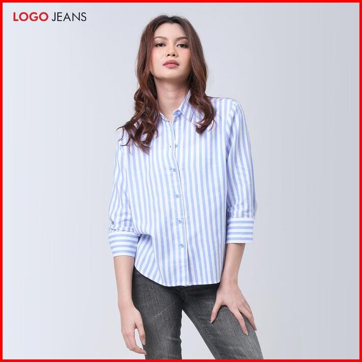 Logo Jeans Kemeja Wanita Cerise Offwhite Blue 23a02l9oe