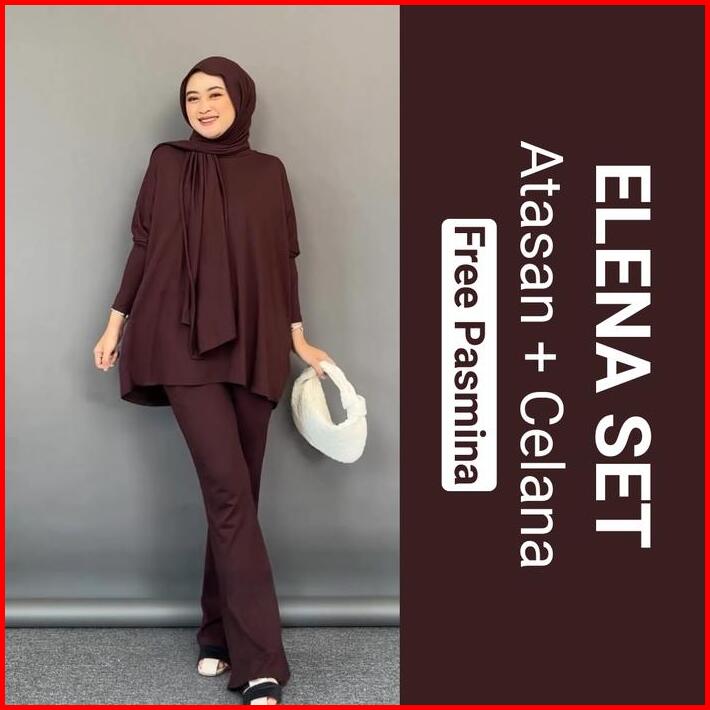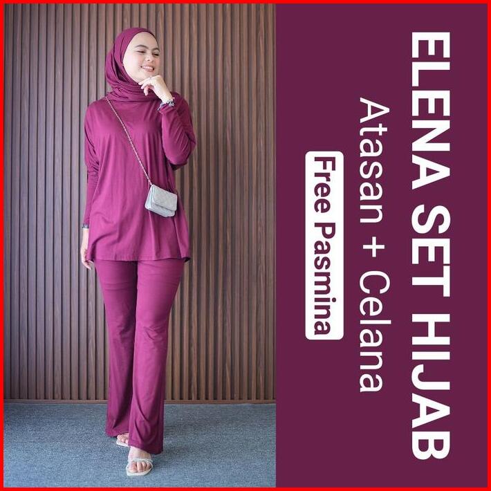 Clotiva Elena Set Atasan Celana Free Pasmina Bahan Rayon Premium Tebal Adem Nyaman