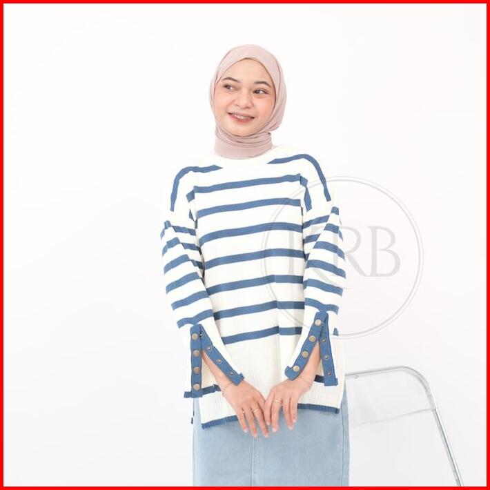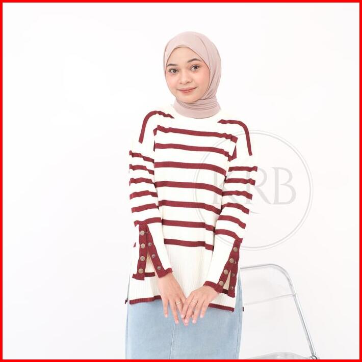 Krb Blouse Inara Kancing Stripe Aktif Outer Wanita Rajut Atasan Wanita Polet