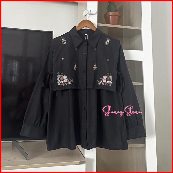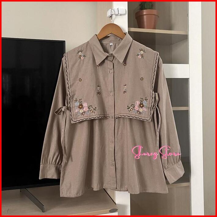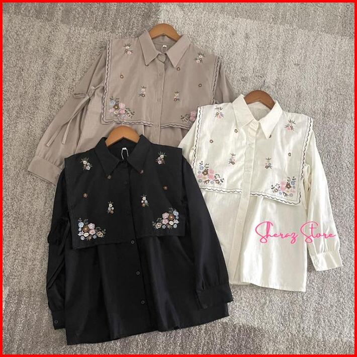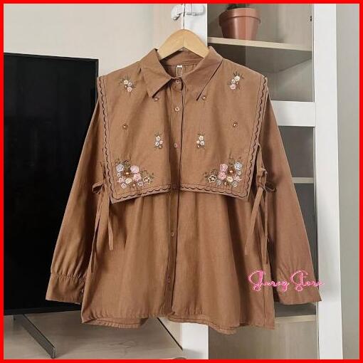 Narika Baju Atasan Kemeja Blouse Bordir Wanita Remaja Jumbo Ld 140 130 120 110 104 98 92 Bahan Linen Premium Kemeja Vira
