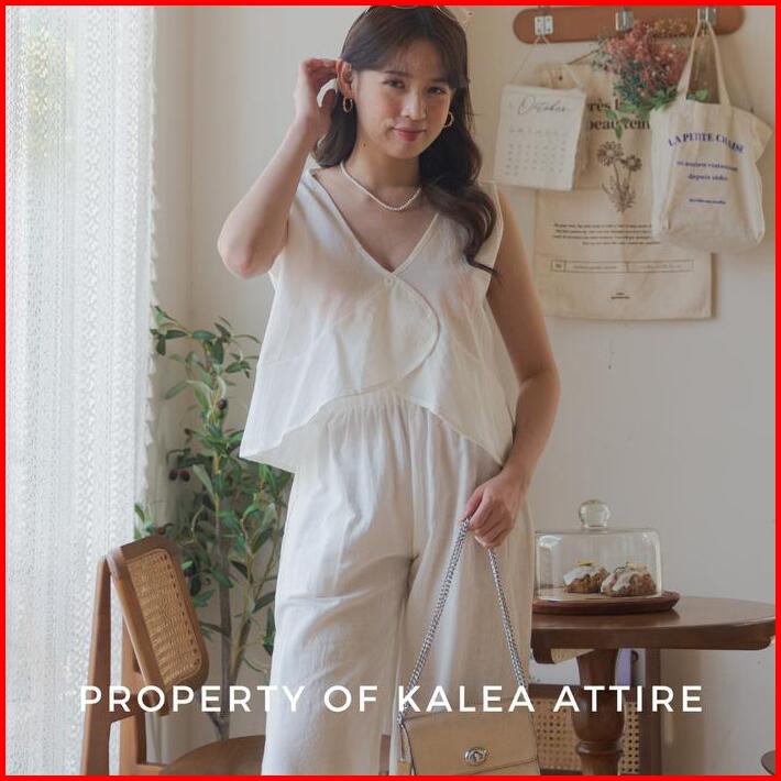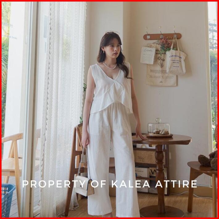 Viona Set Trousers By Kalea Attire Setelan Wanita Linen Setelan Wanita Pantai Linen Setelan Vest Tali Dan Highwaist Pant