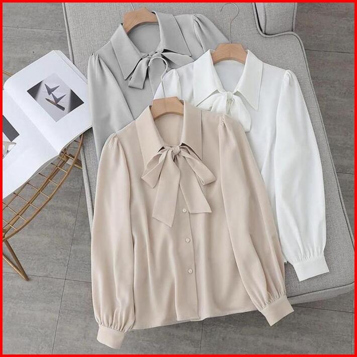 Gangnam Top Atasan Blouse Kemeja Kerja Casual Wanita Jumbo Ld 92 98 104 110 120 130 140 Korean Style Oversize Putih Keme