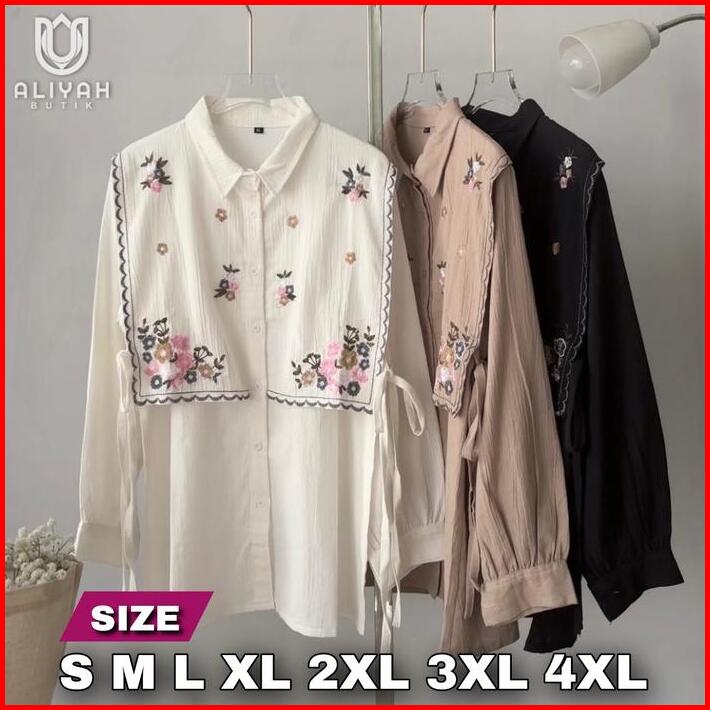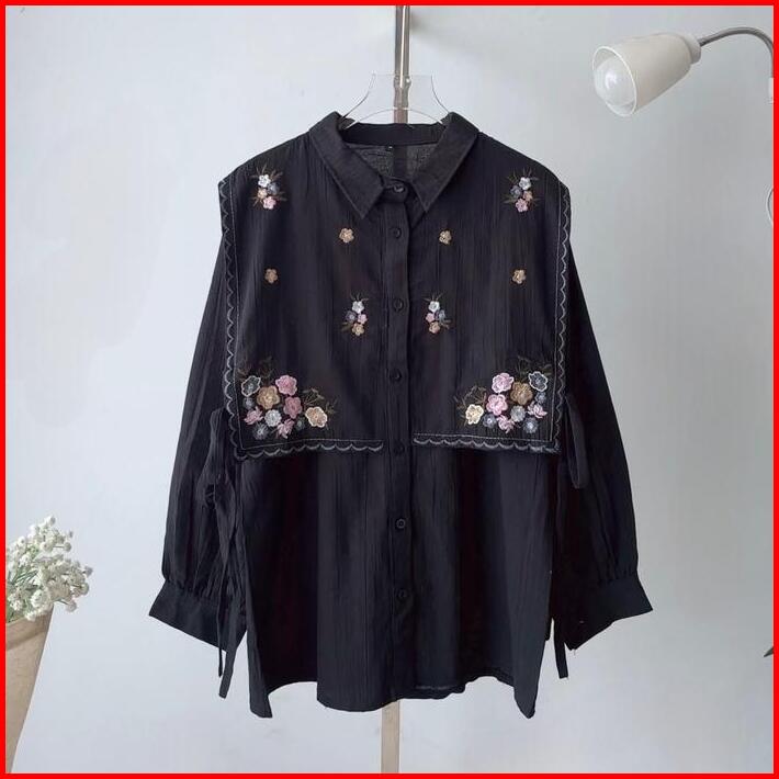 Daeung Blouse Kemeja Bordir Kemeja Kerja Bahan Cotton Salur Big Size Ukuran Size S M L Xl 2xl 3xl 4xl Xxl Xxxl Xxxxl 2l