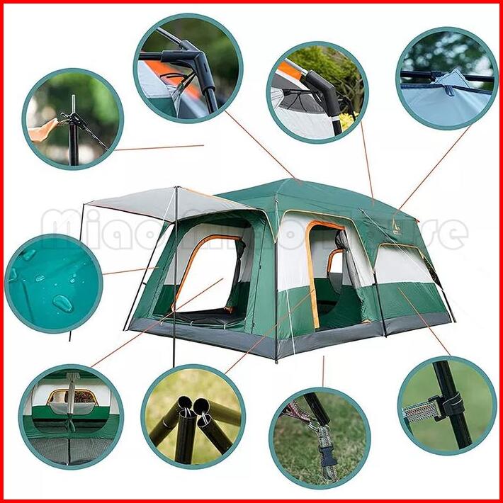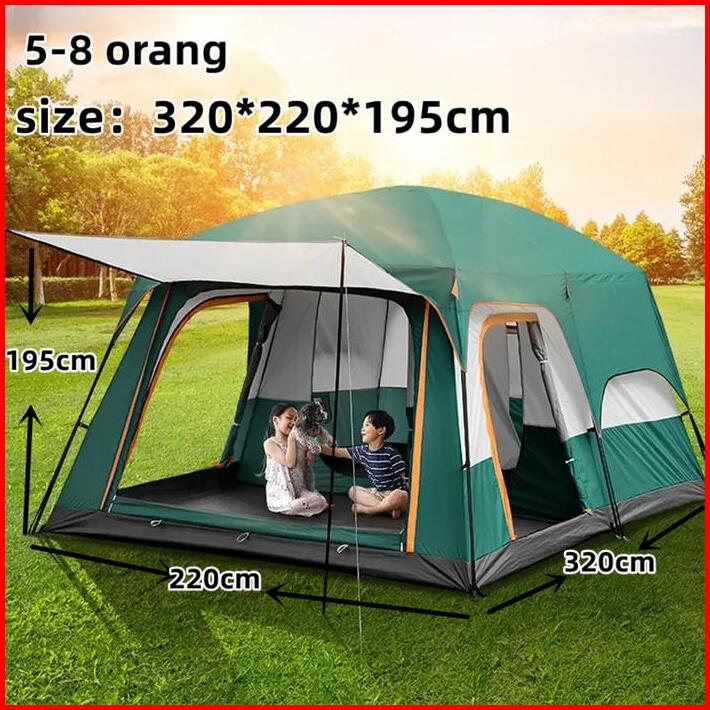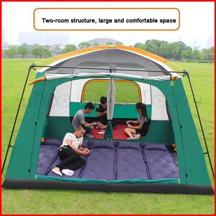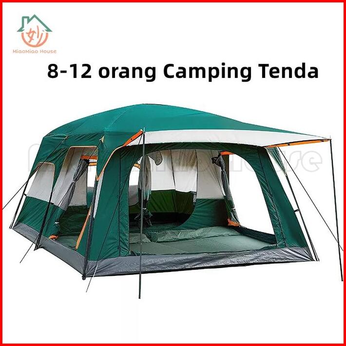 8-12 Orang Tenda Camping Tenda Tahan Air Lapisan Ganda Pertemuan Keluarga Tenda Besar Portable Outdoor Waterproof