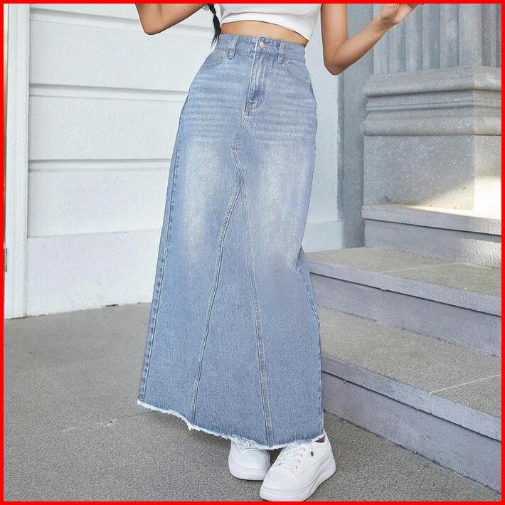 2244 Long Denim Skirts For Women Korean Style Stylish Pockets Trend Skirt