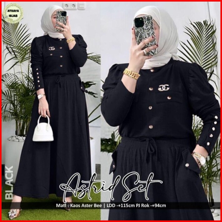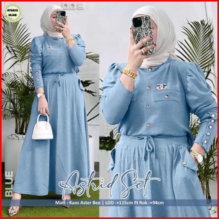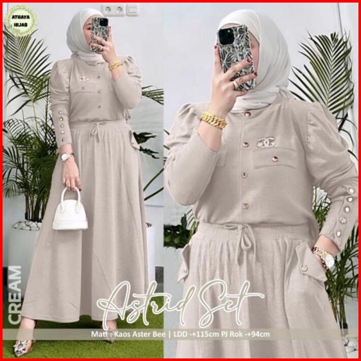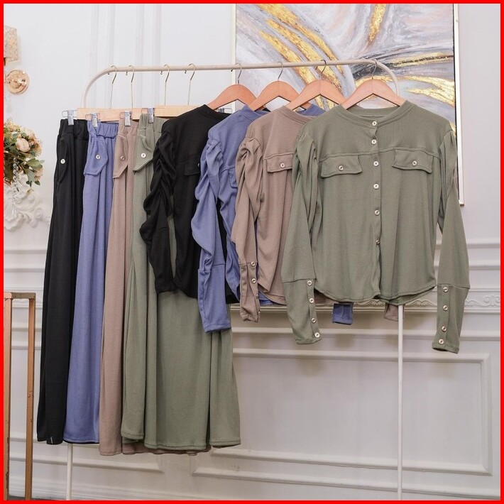 Astrid Setelan Rok Knit Tangan Balon Kancing Aktif