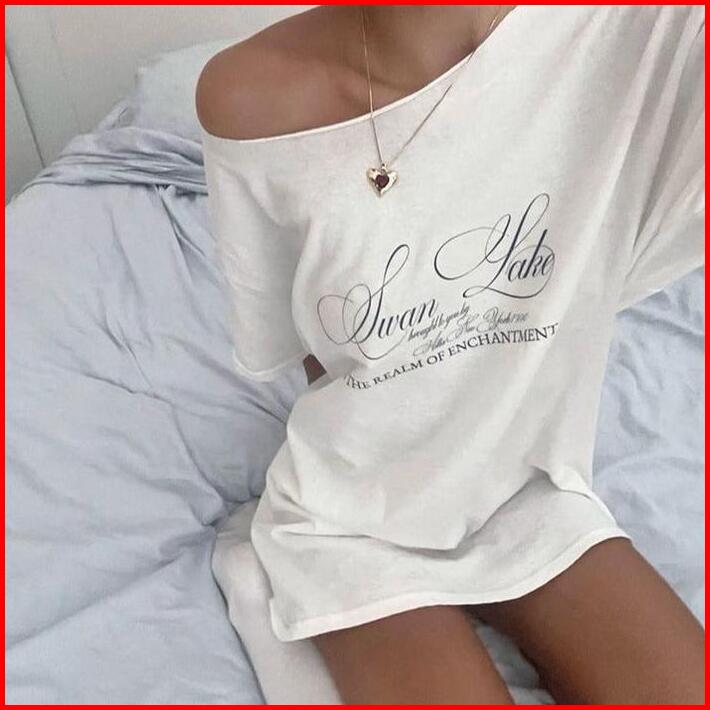 Swan Lake Offshoulder Tshirt Oversize Coquette Ballet Soft Y2k Cute Princess Pink Aesthetic