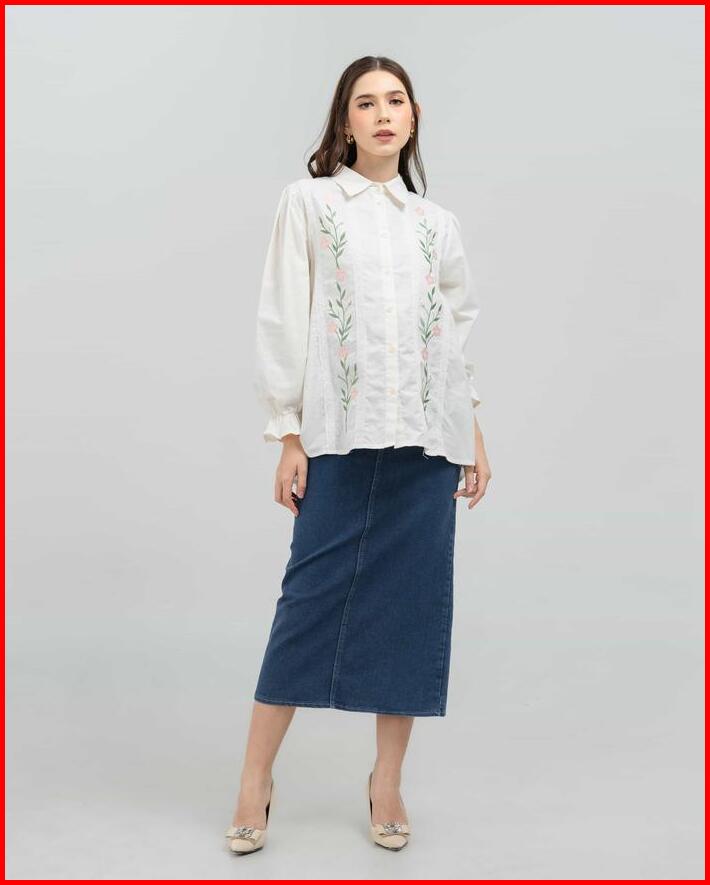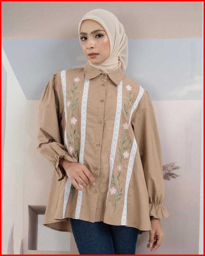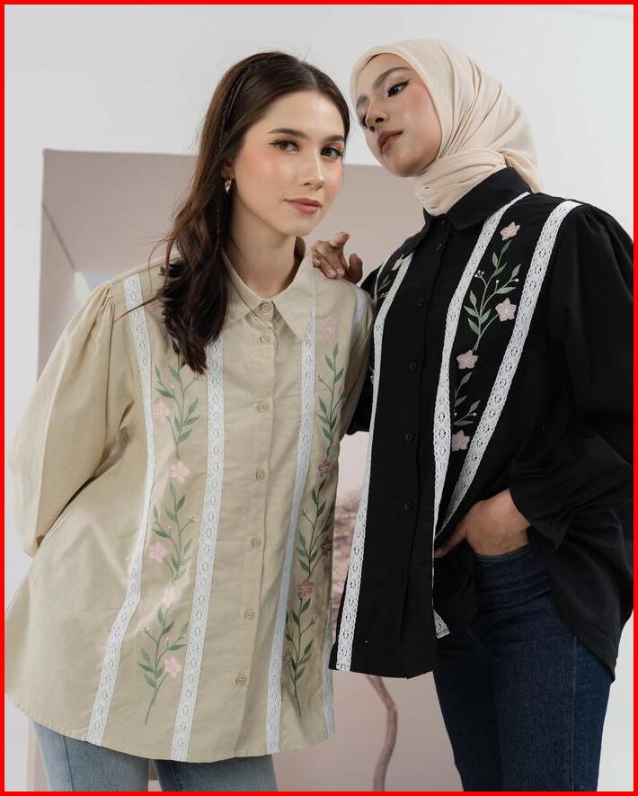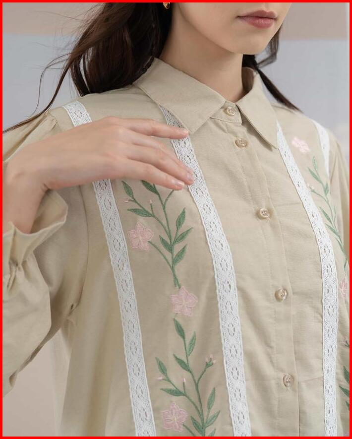 Mayoutfit Calynn Shirt Kemeja Linen Wanita Embroidery Floral Aksen Renda Bordir