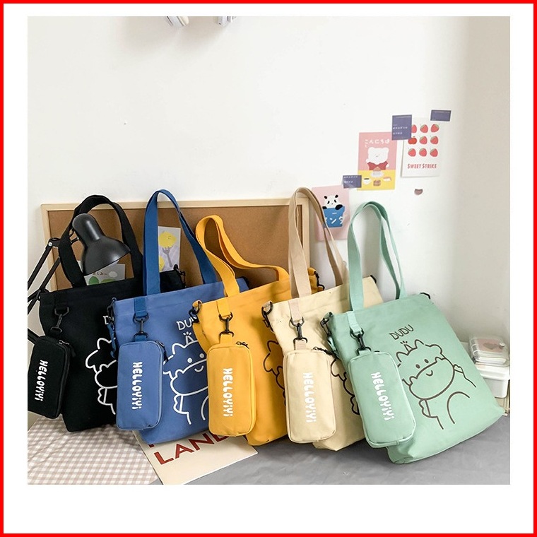 Arkhan Bag - Tas Tote Bag Wanita Resleting Ber Anak Terbaru 2023 Aesthetic Kekinian Motif Carakter Hello Dudu Korea Styl