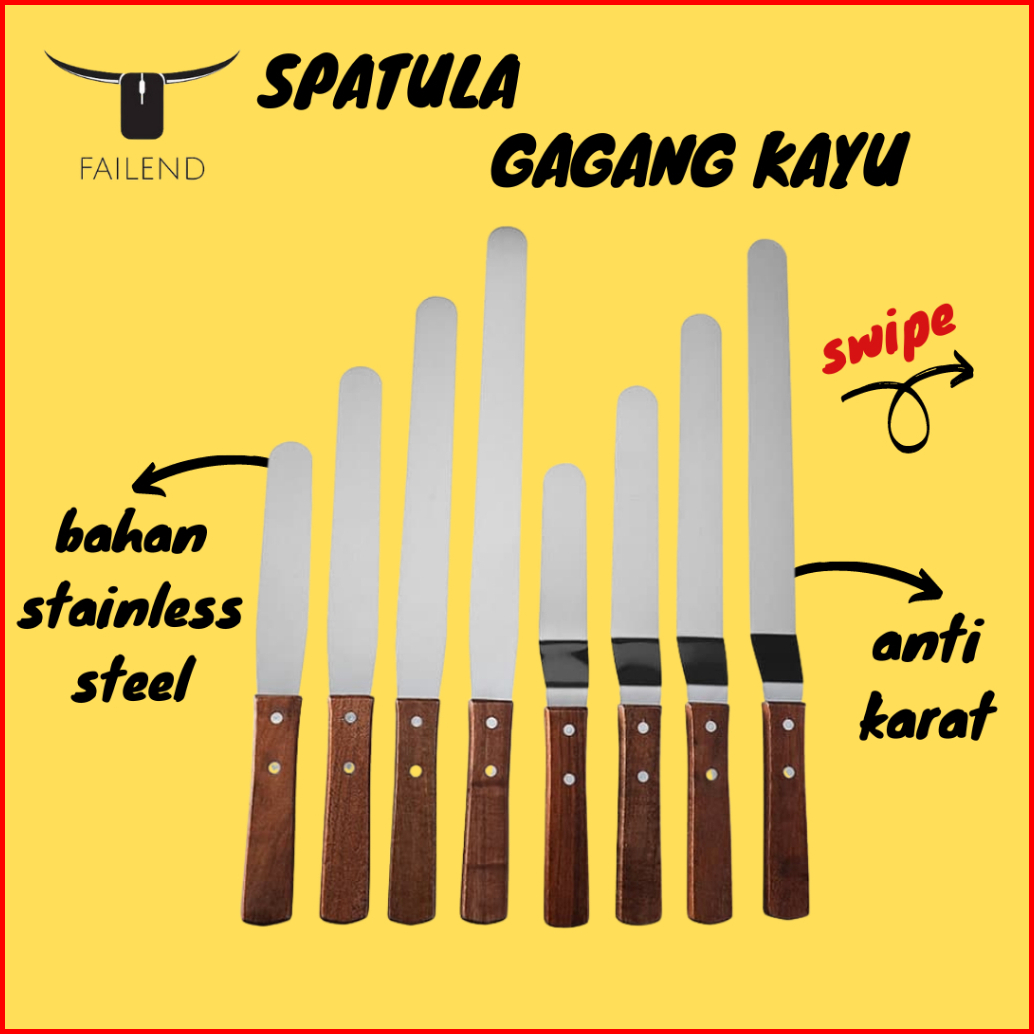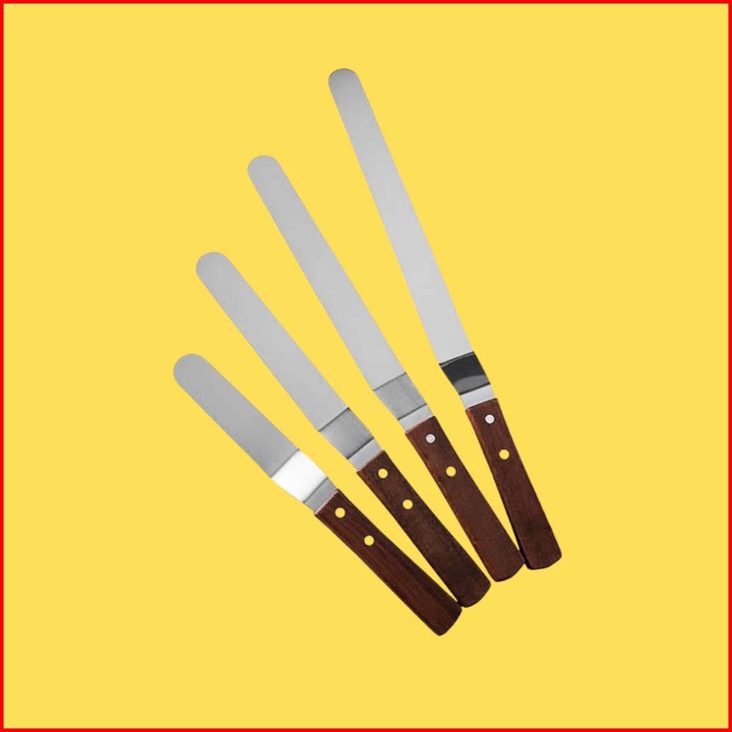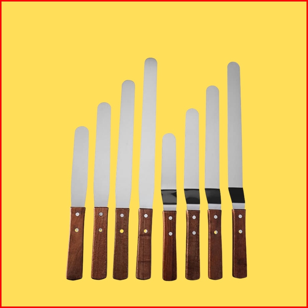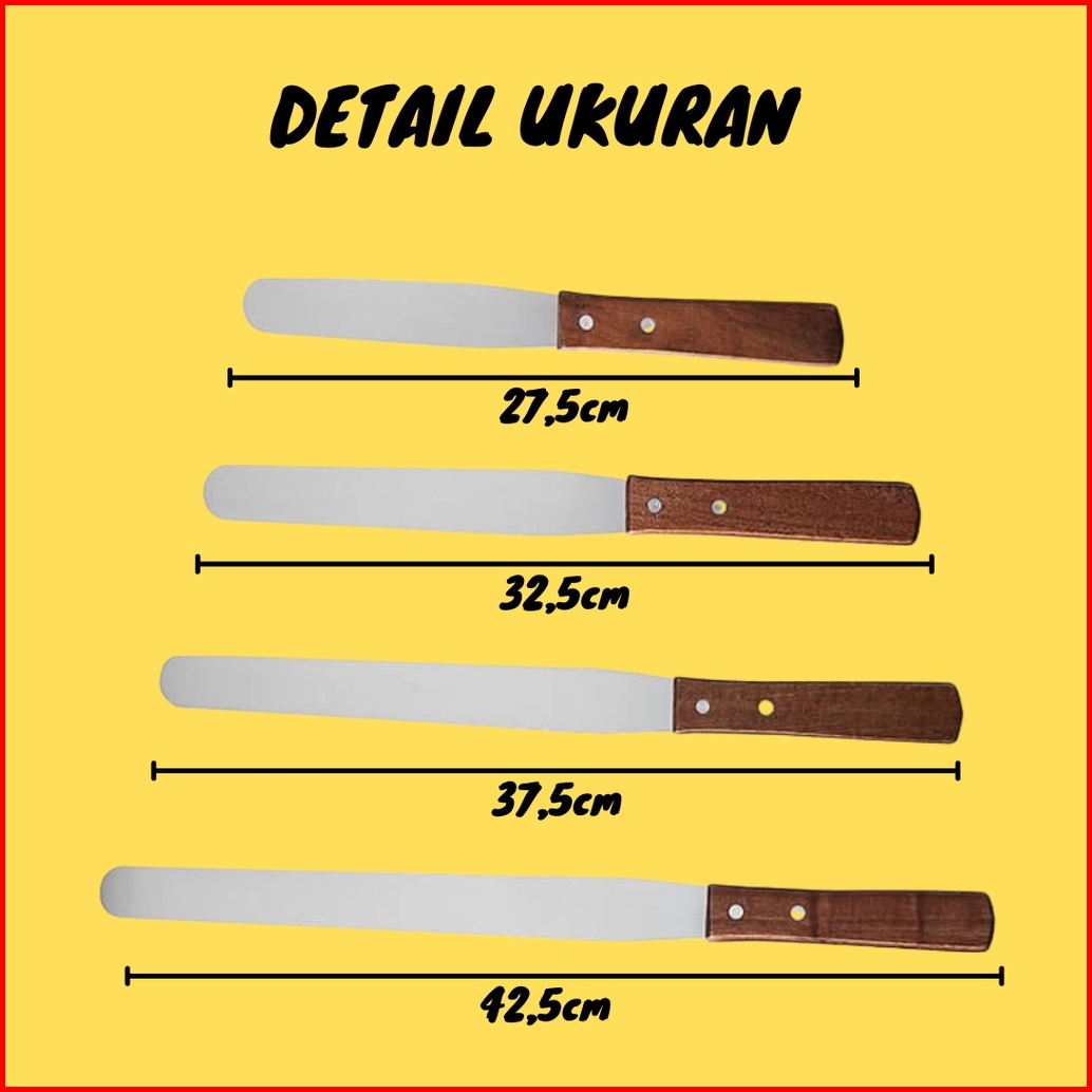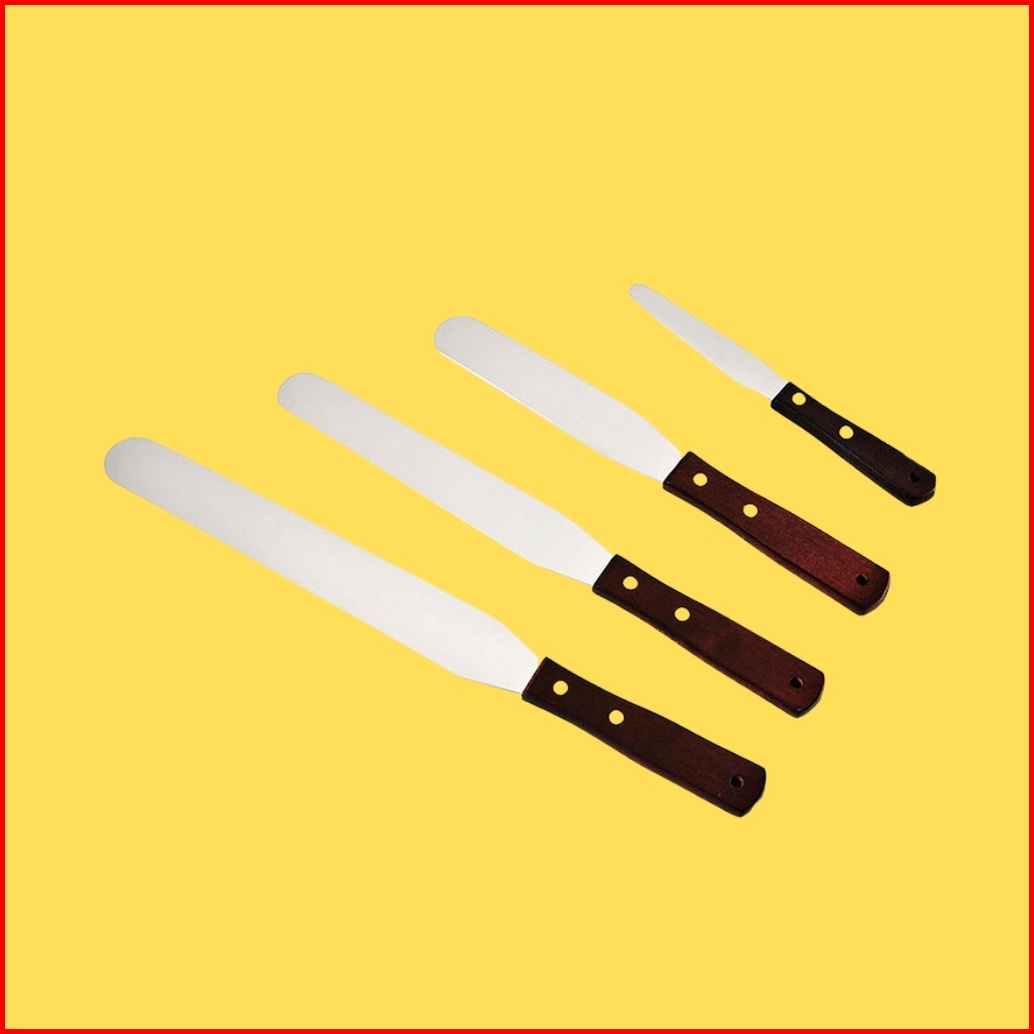 Spatula Buttercream Stainless Bengkok Lurus Gagang Kayu