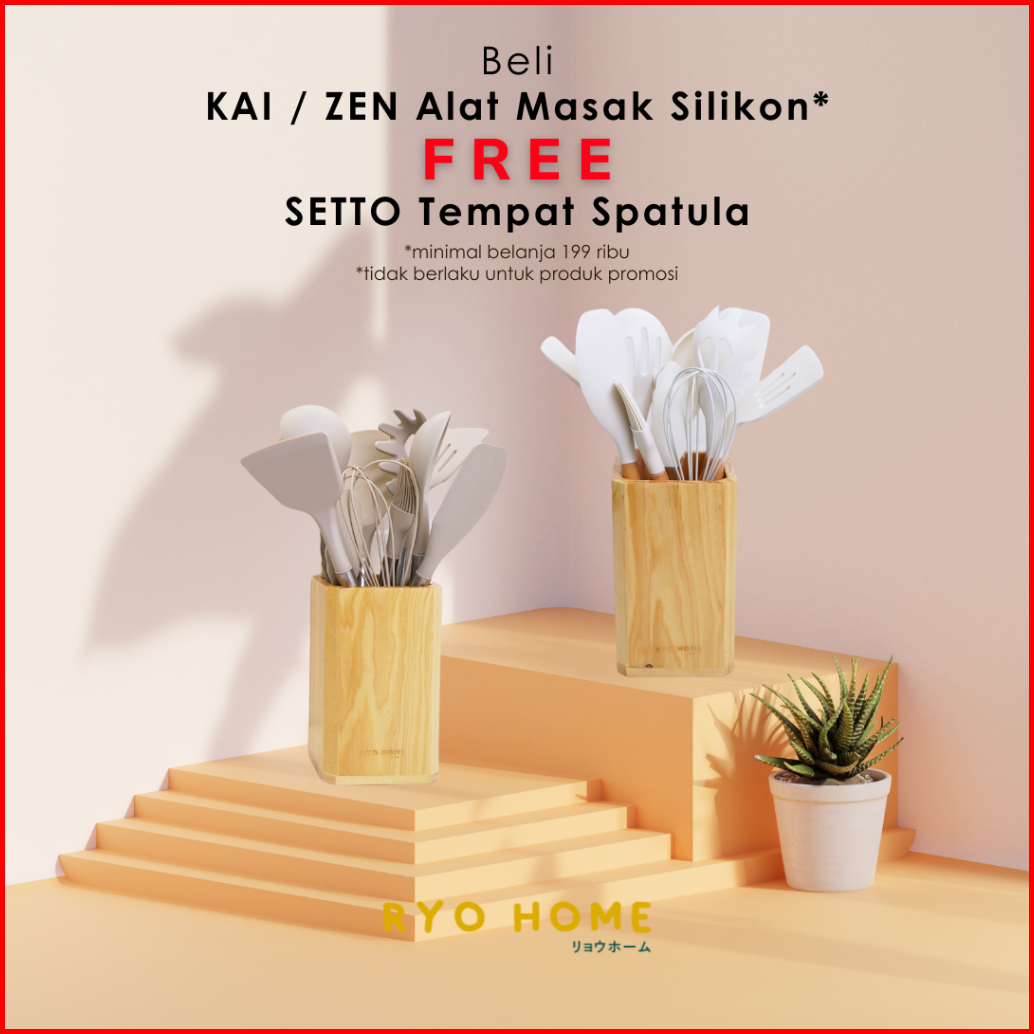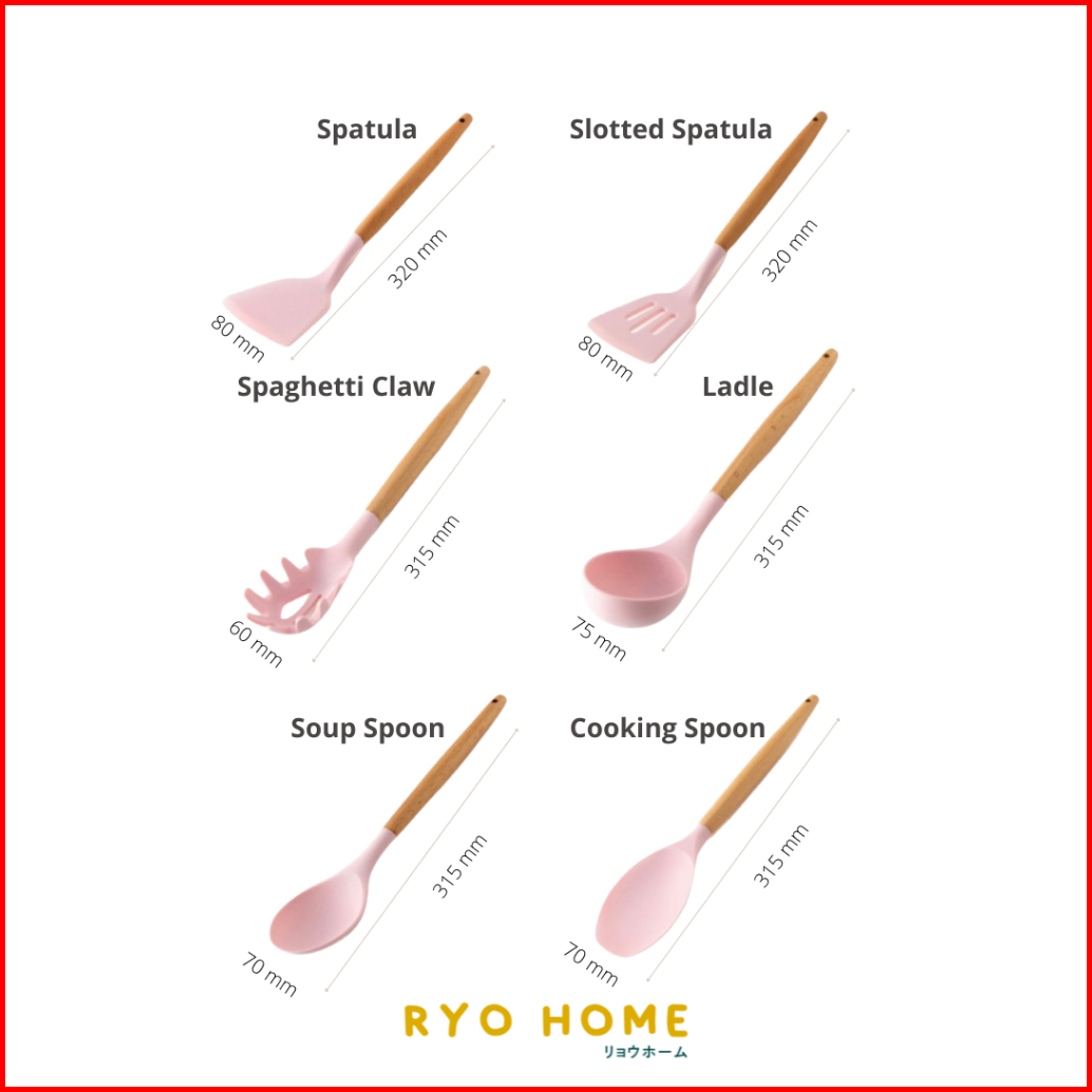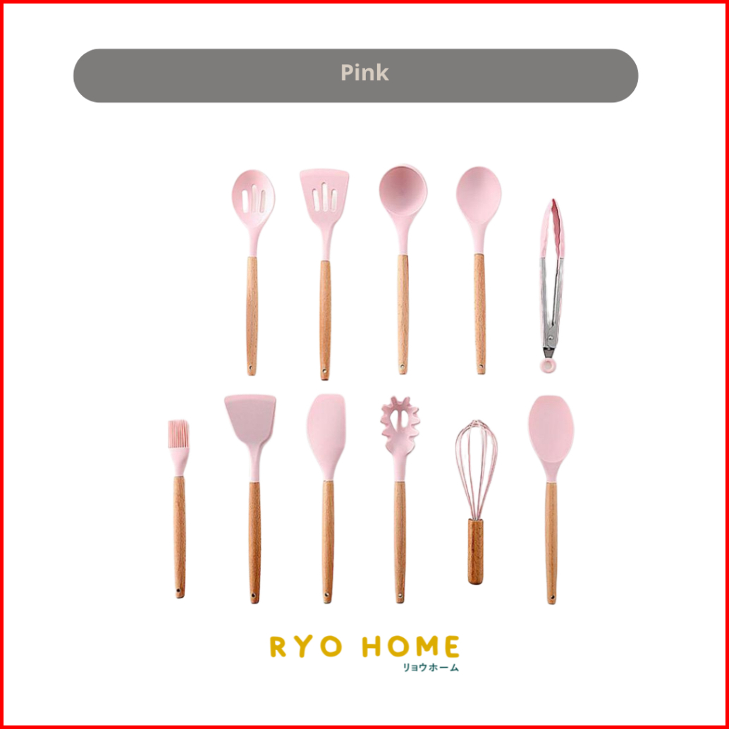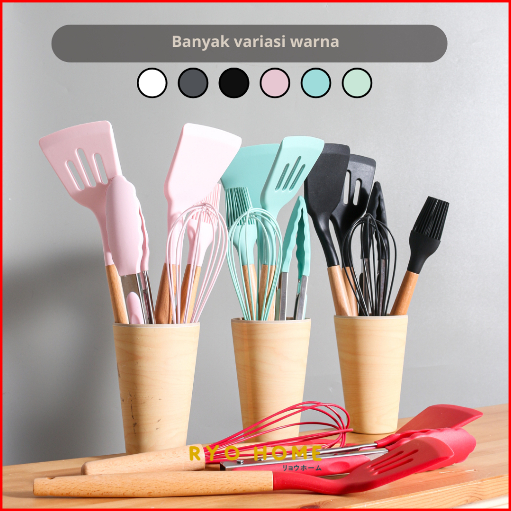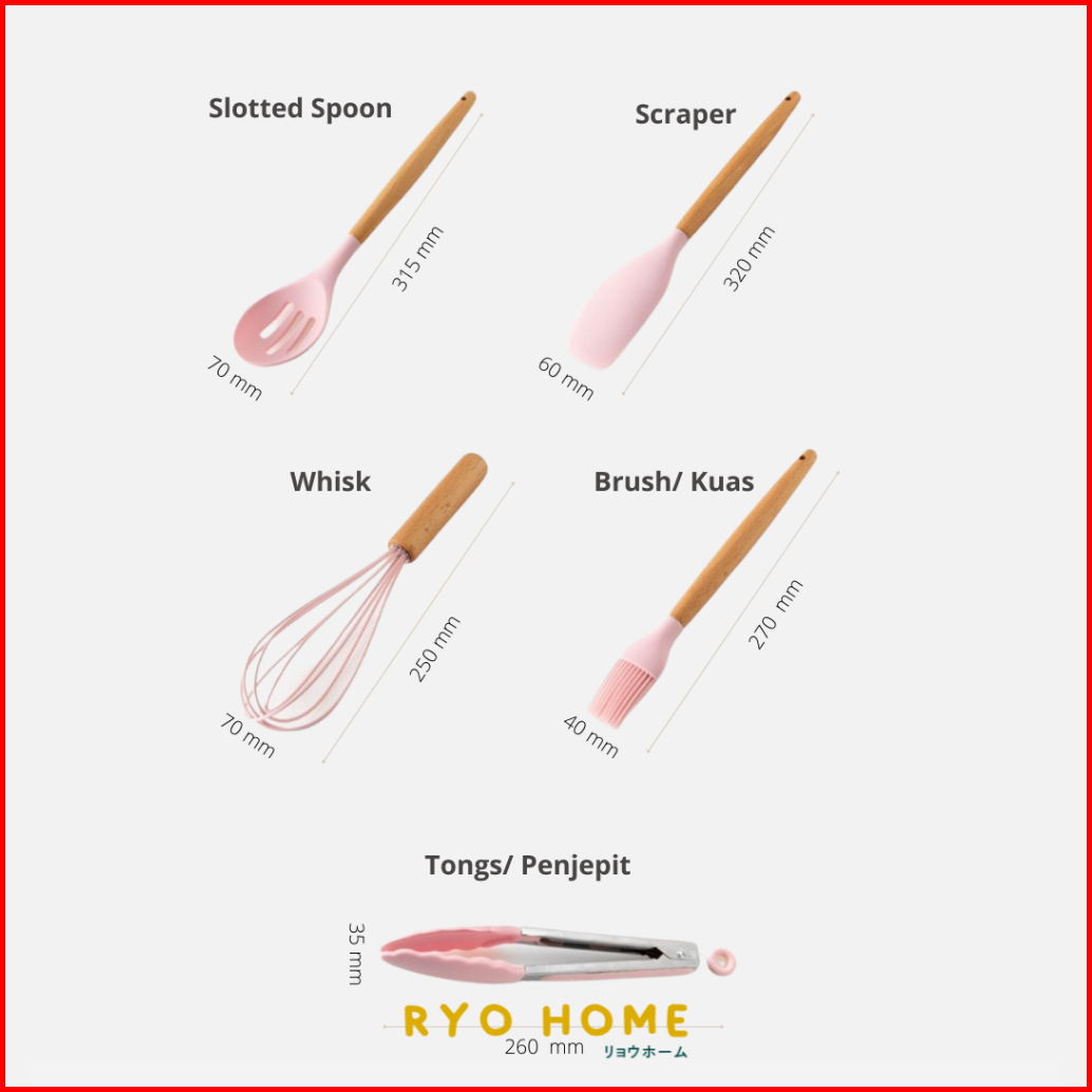 Ryo Home - Kai Peralatan Masak Bahan Silikon Dengan Gagang Kayu