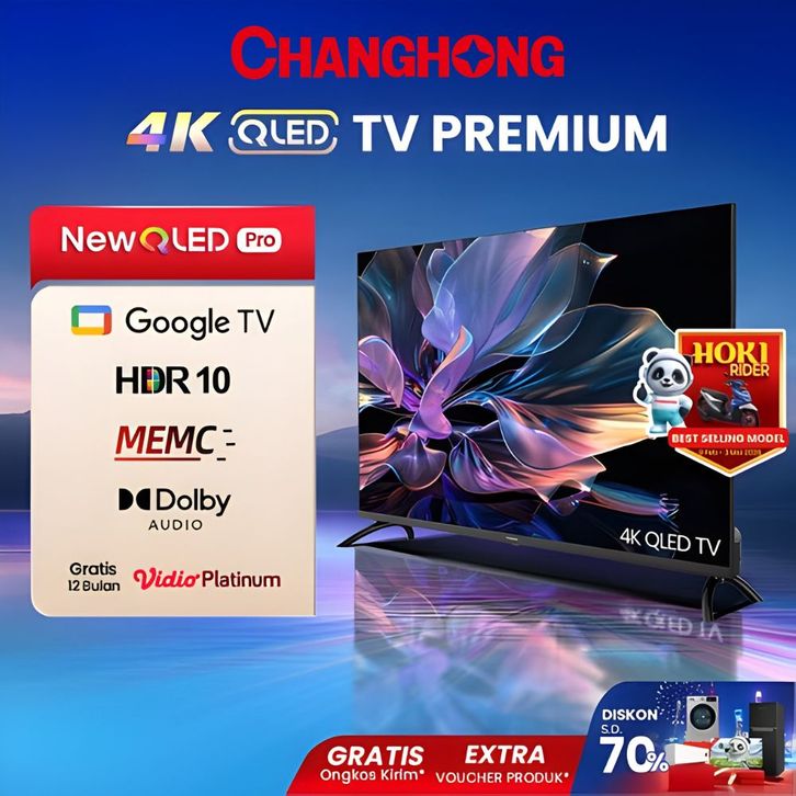 SMART GOOGLE TV CHANGHONG QLED 4K PRO 55 50 43 40 32 INCH DOLBY AUDIO TELEVISI LED FULLHD ANDROID DIGITAL MURAH TANPA DP