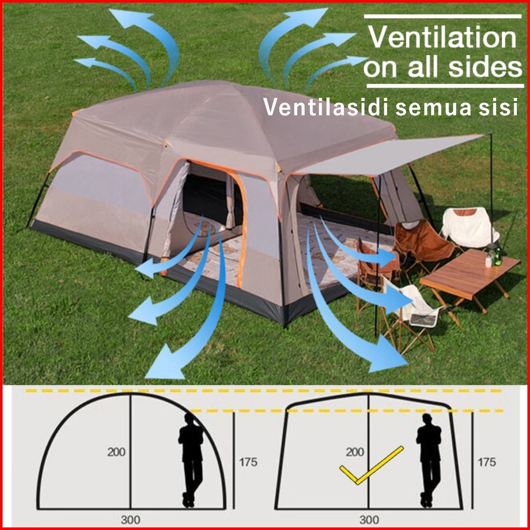 Wthb Outdoor Tenda Camping Outdoor 8-12 Orang Tenda Waterproof And Windproof Tenda Pertemuan Keluarga Tenda Besar Outdoo