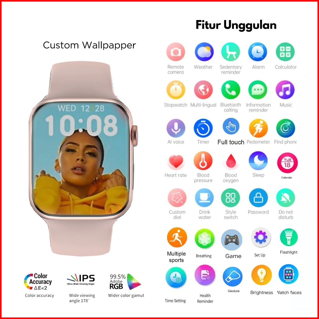 Smartwatch Series I10 Pro Max 2.0 Hd Touch Screen Bluetooth Call Custom Wallpaper Jam Tangan Pria Heart Rate Monitor Blo