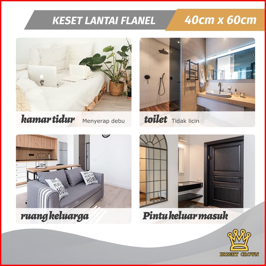 Bright Crown Keset Kaki Bahan Flanel Anti Slip 40x60cm Keset Rumah High Quality