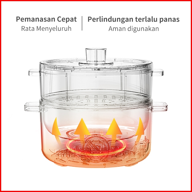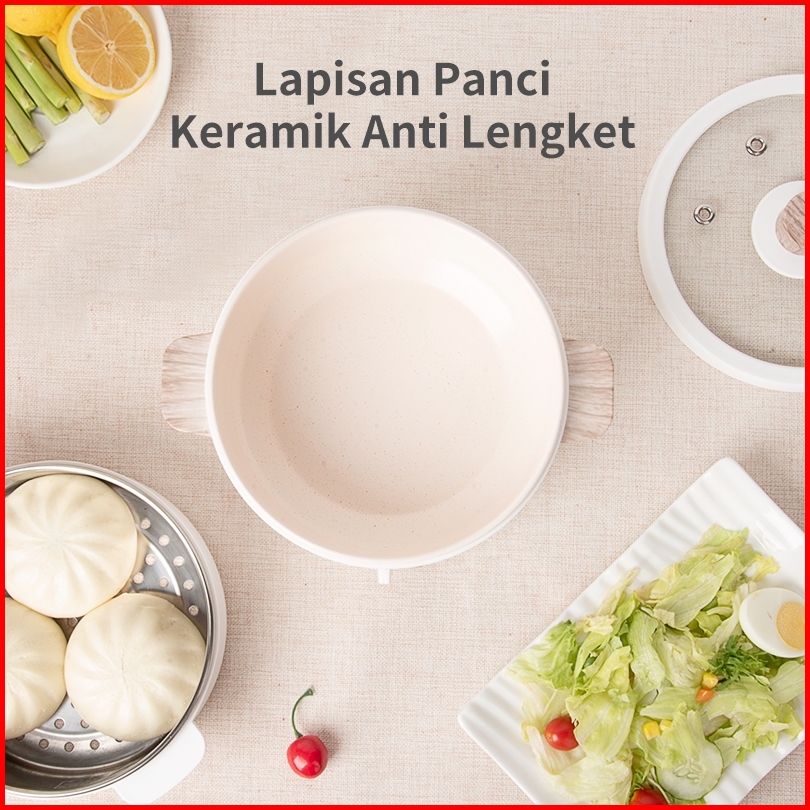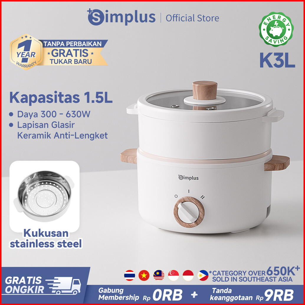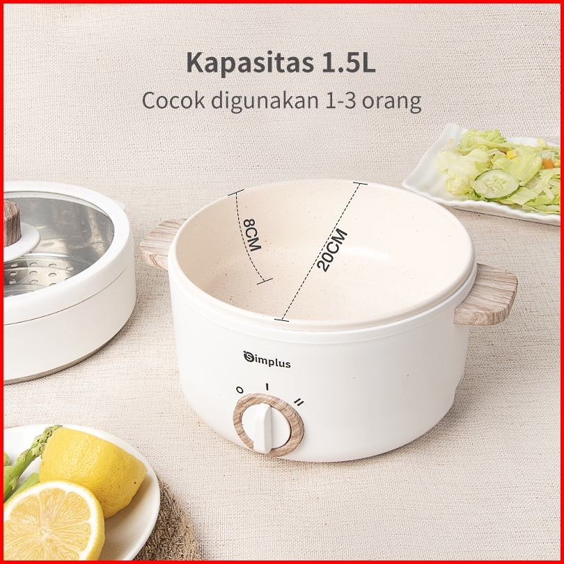 Simplus Panci Listrik Kapasitas 1.5l Panci Serbaguna Anti Lengket Dengan Kukusan 2 Mode Panas