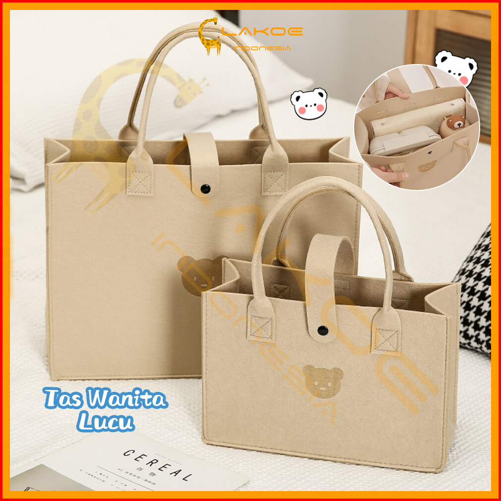 Lakoe Tas Jinjing Tote Bag Beruang Lucu Tas Tenteng Hampers Buat Kado Aesthetic Handbag