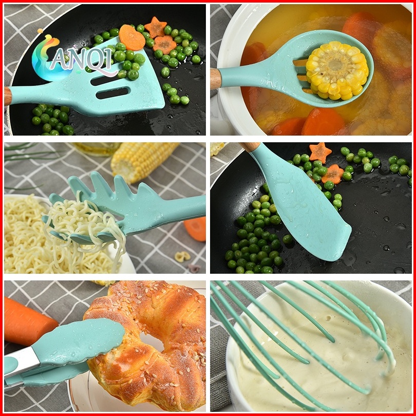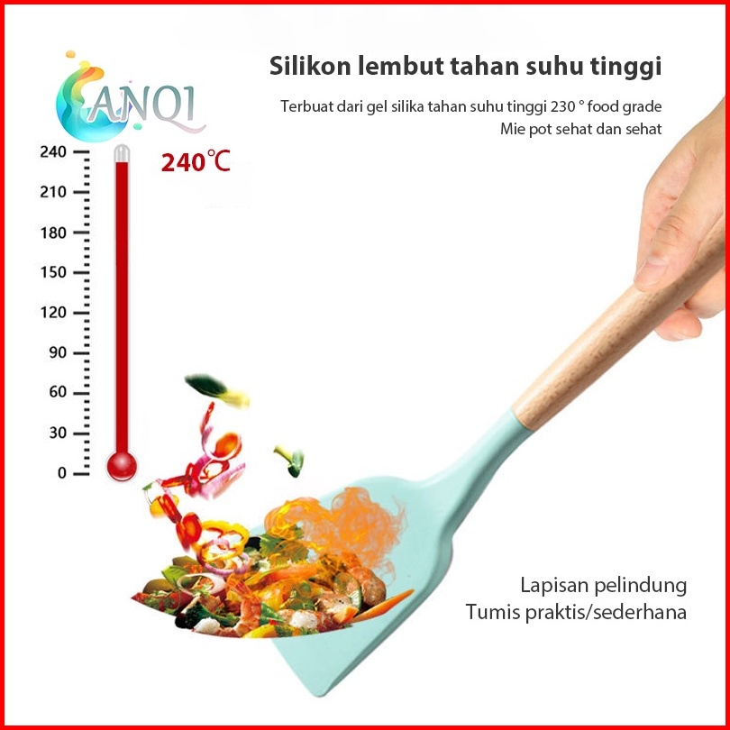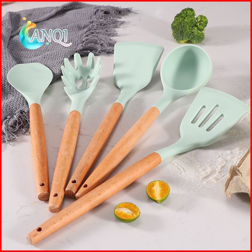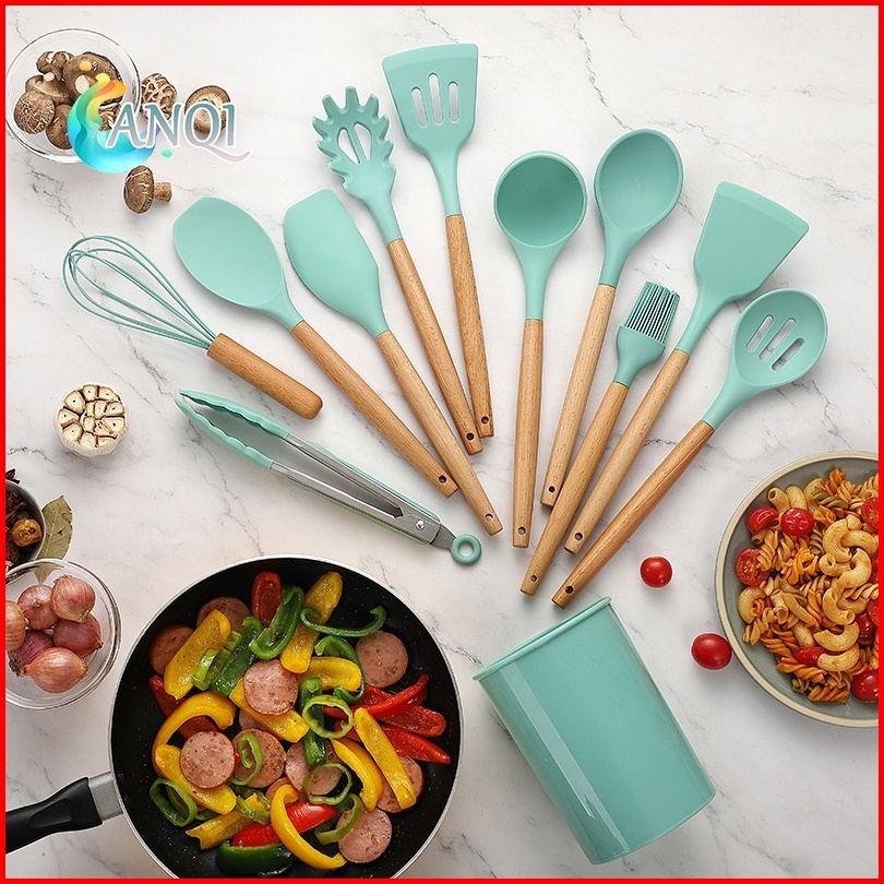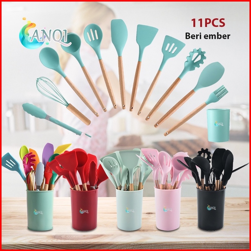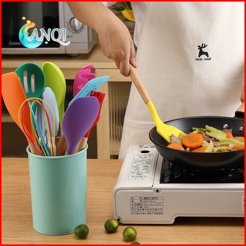 Anqi Shop Silicone Utensil Set 12pcs Peralatan Spatula Silikon Sutil Kitchen Set Free Wadah Vs-1809
