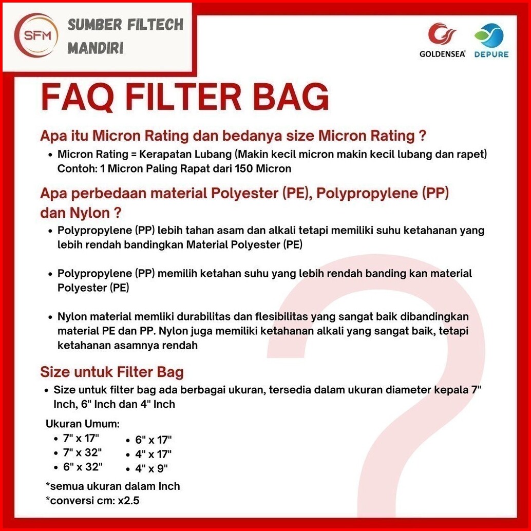 Depure Gaf Filter Bag Saringan 1 5 10 20 25 50 100 150 Micron 732 Saringan Toren Saringan Air