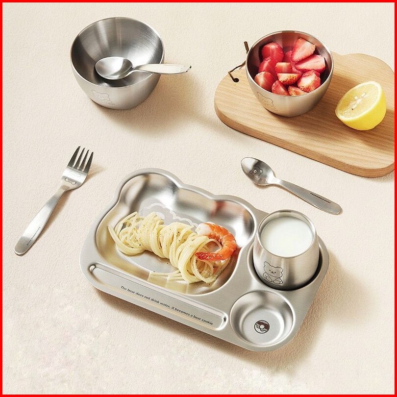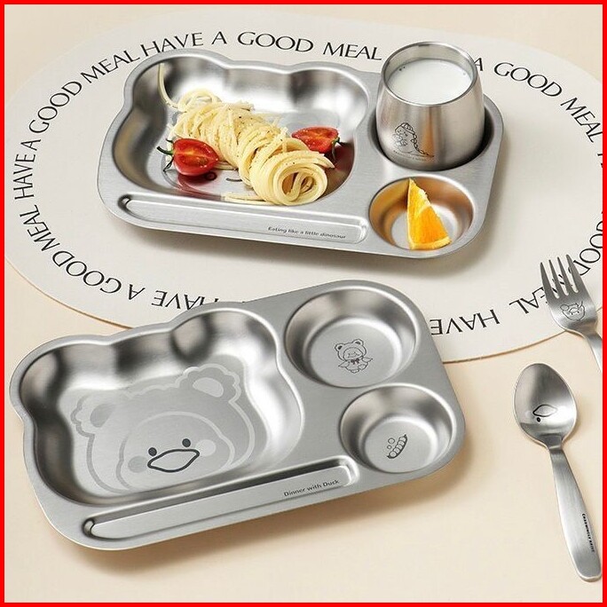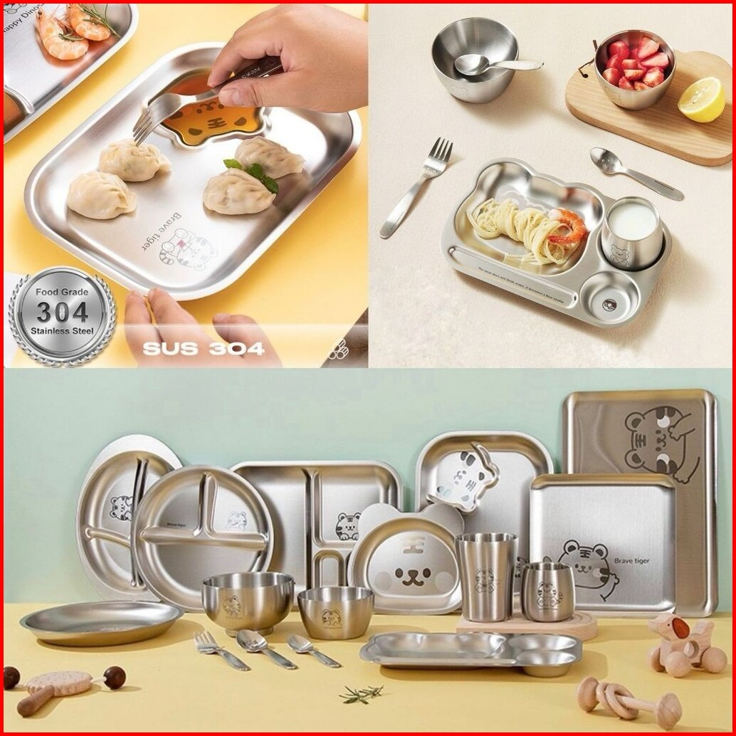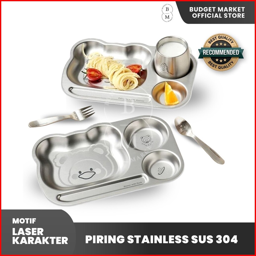 Piring Stainless Sus 304 Laser Karakter Piring Gelas Mangkuk Stainless Peralatan Makan Stainless Piring Makan Anak Balit