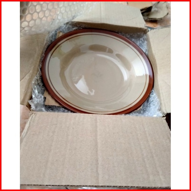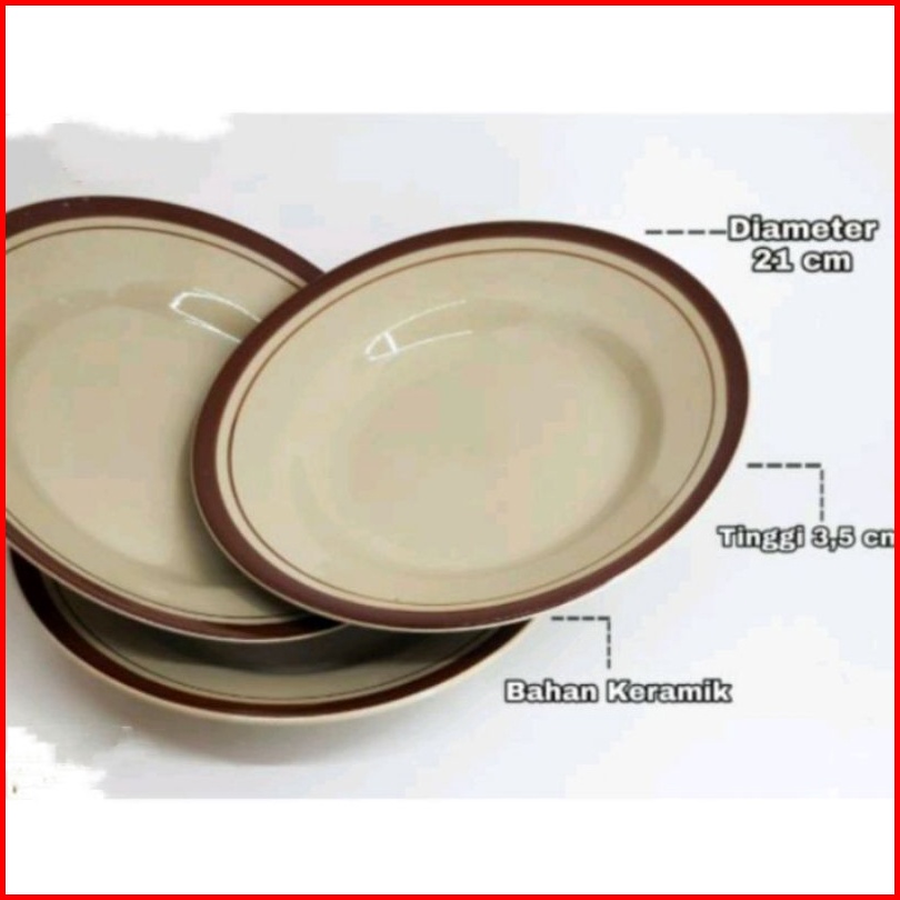 Piring Keramik Lis Coklat Piring Wartek 6pcs