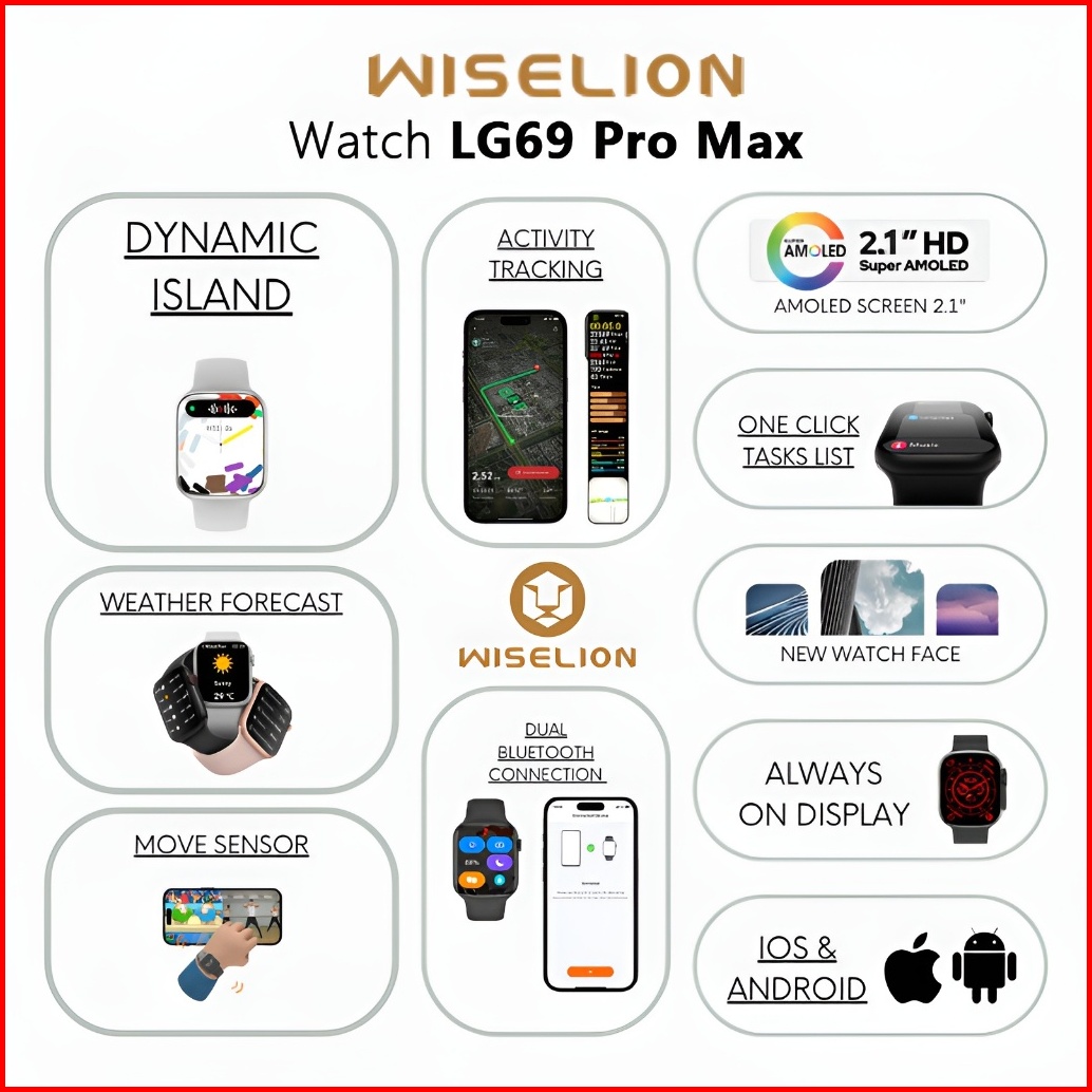 Wiselion Bluetooth Smartwatch Lg69 Pro Max Nfc Support Sport Health Mode Hi-fi Sound Gps