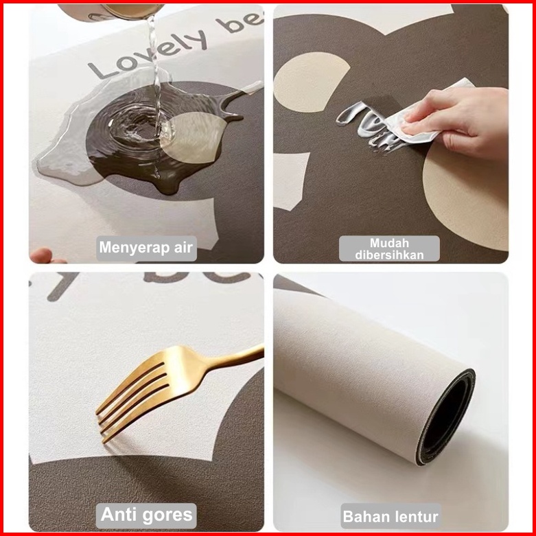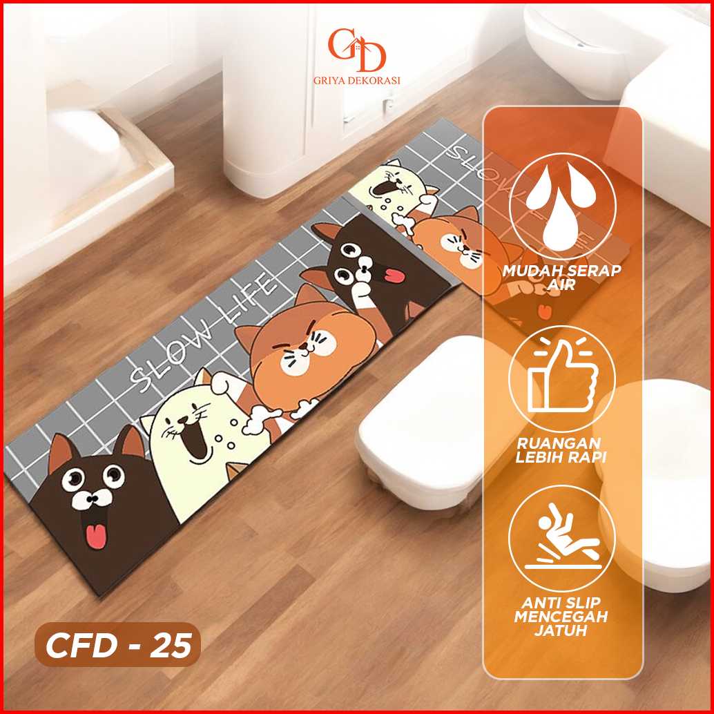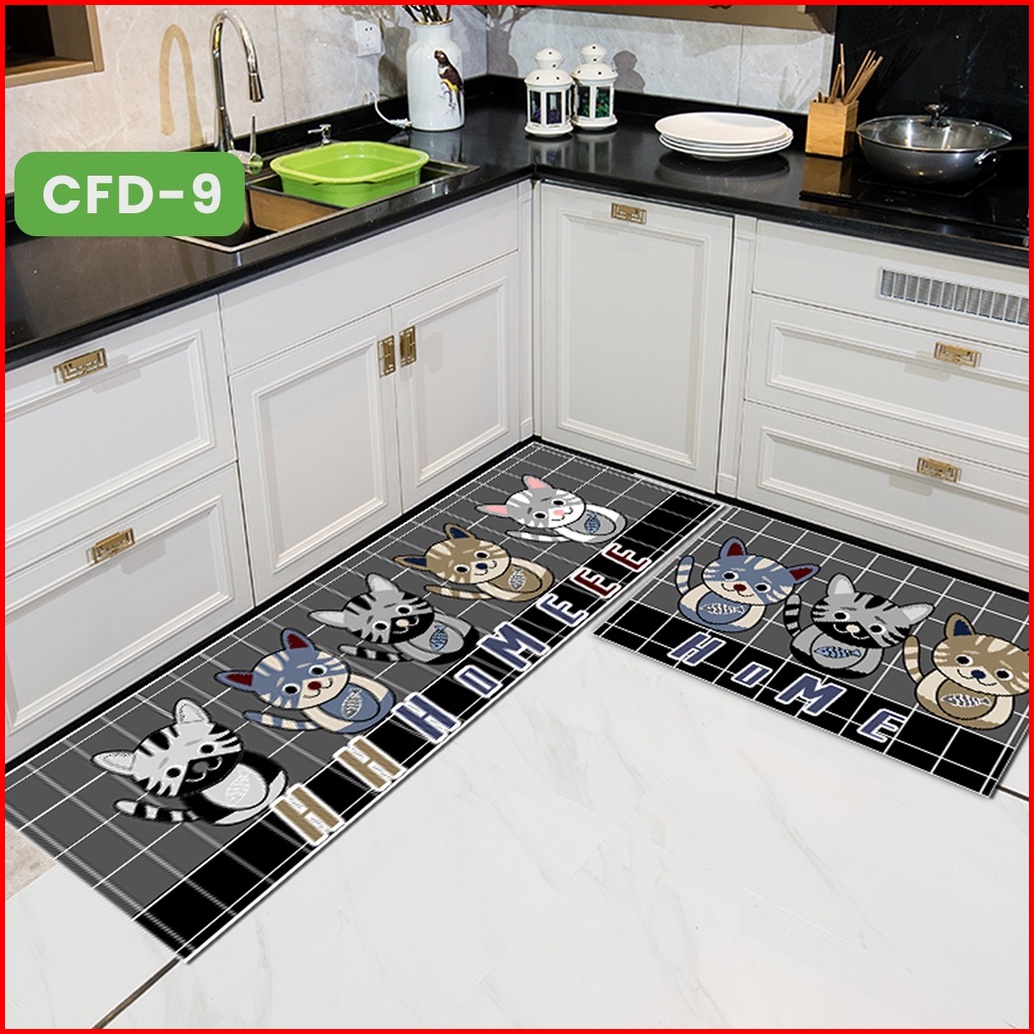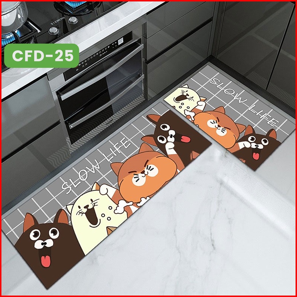 Keset Dapur Set 2in1 Anti Slip Kitchen Mat Keset Kaki Kamar Mandi Menyerap Air Motif Lucu Od