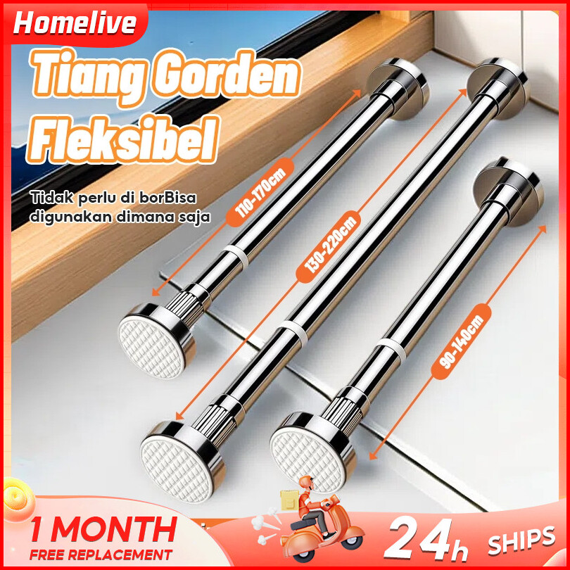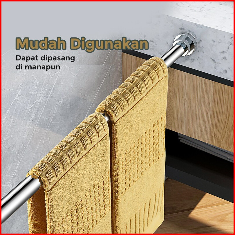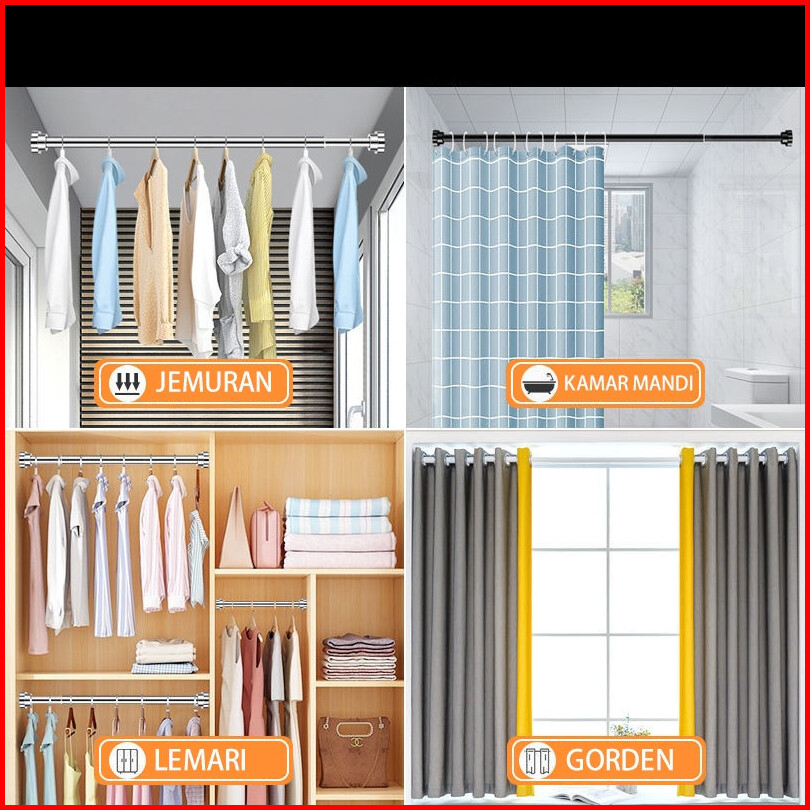 Tiang Gorden Batang Tiang Gorden Fleksibel Gantungan Serbaguna Teleskopik Gantungan Baju Tirai Kamar Mandi