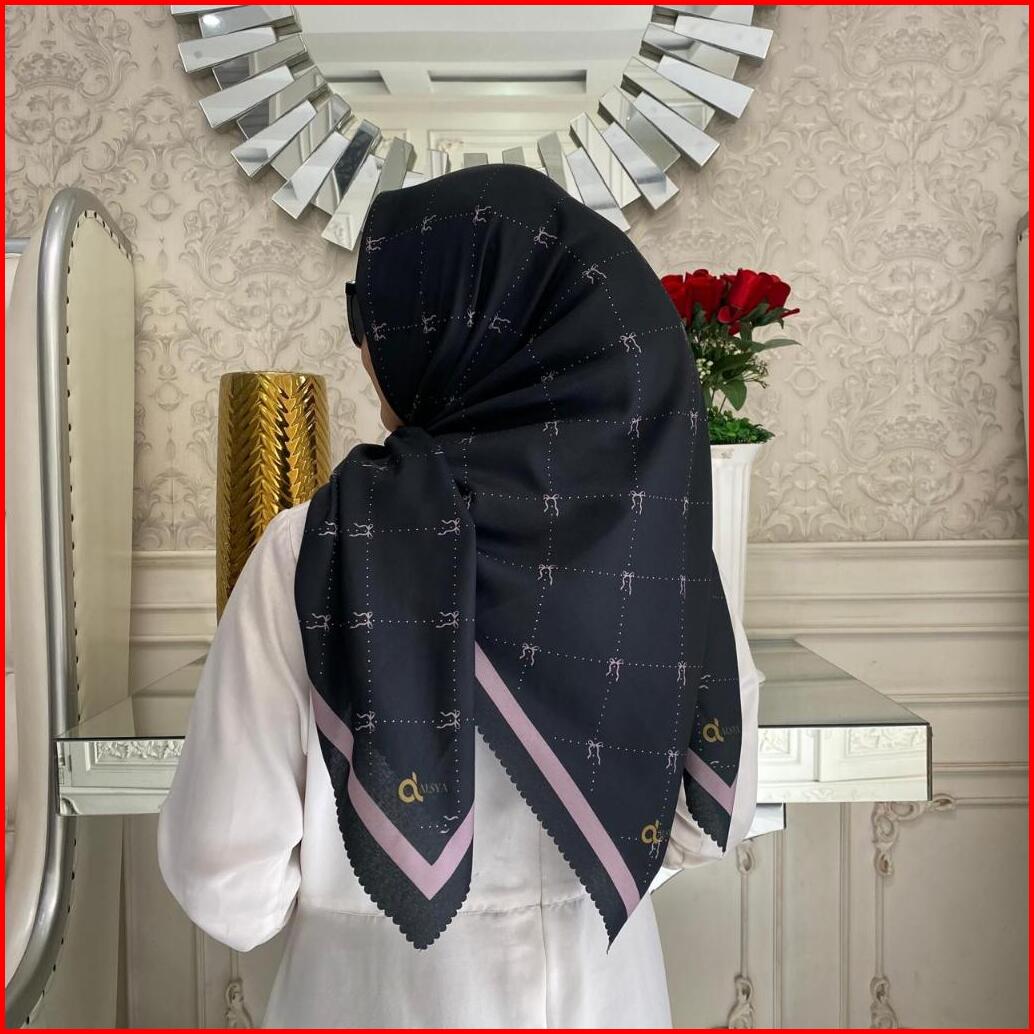 Alsya Hijab Kerudung Voal Segi Empat Premium Jilbab Motip Lasercut Sublime Pita Series
