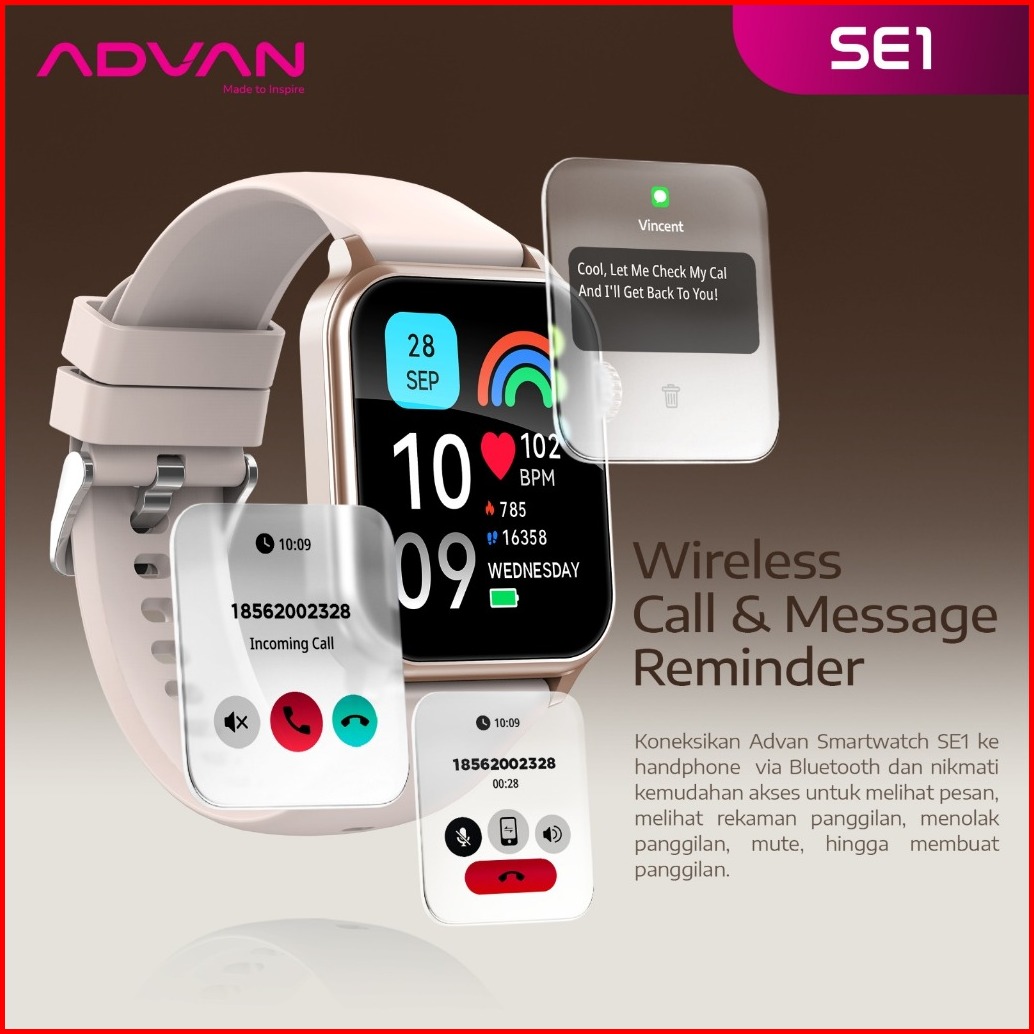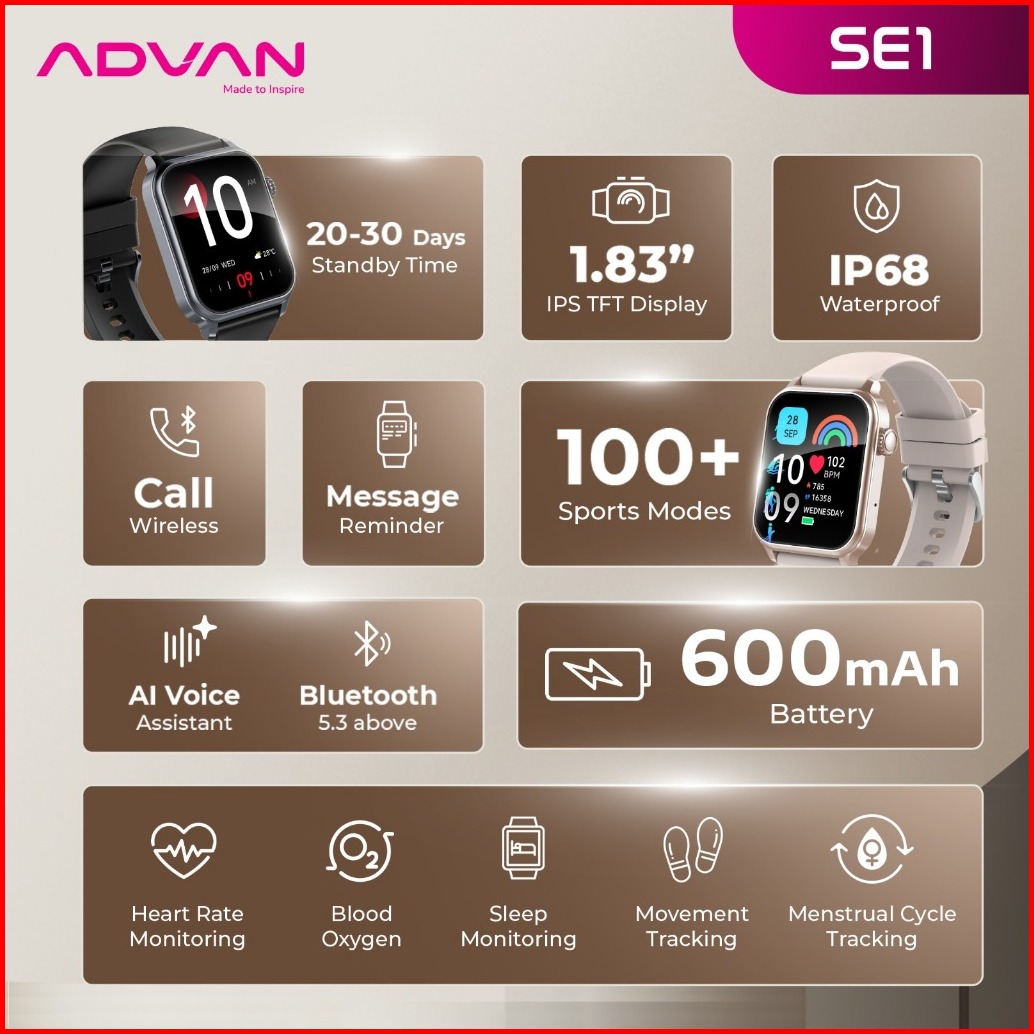 Promo Special Advan Smartwatch Se1 Ips 1.83 Bluetooth Calls Bluetooth 5.2 Ai Voice Assistant 100 Sport Mode Waterproof I