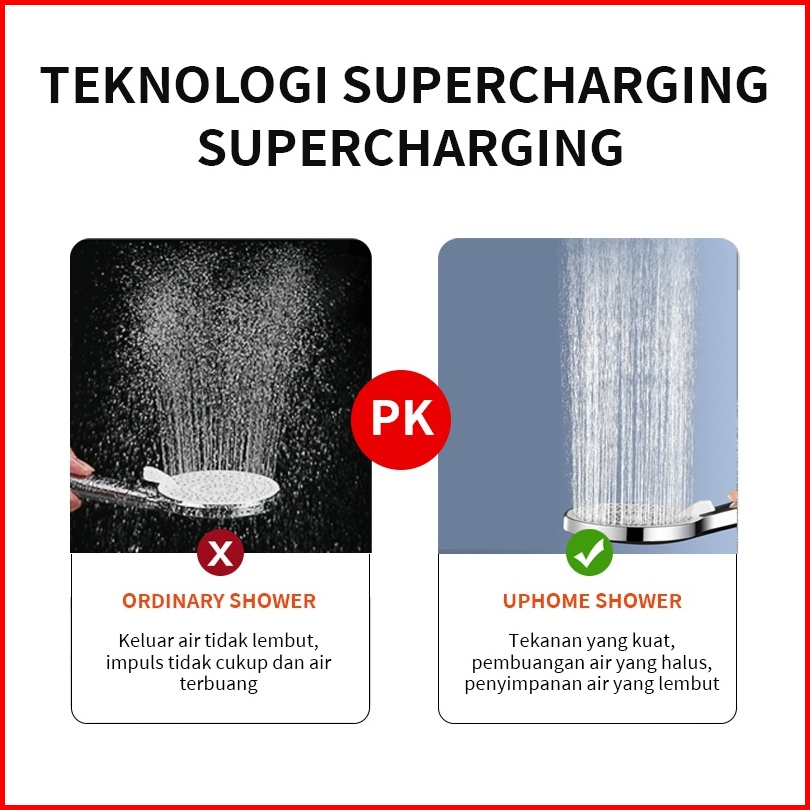 Uphome Hand Shower Kamar Mandi Paket 12cm 240 Lubang Panel Shower Tekanan Tinggi Supercharged 4 Mode Shower Set Fungsi H