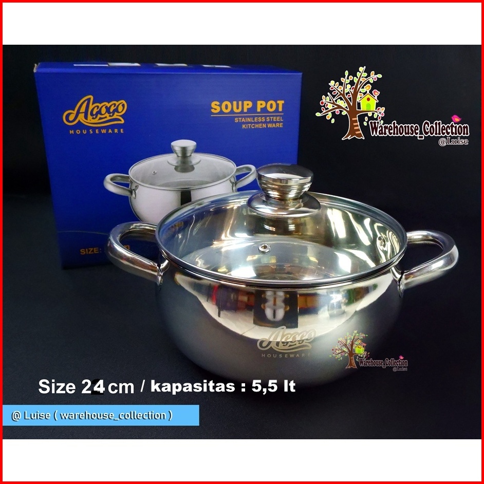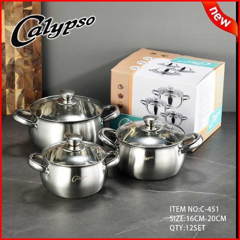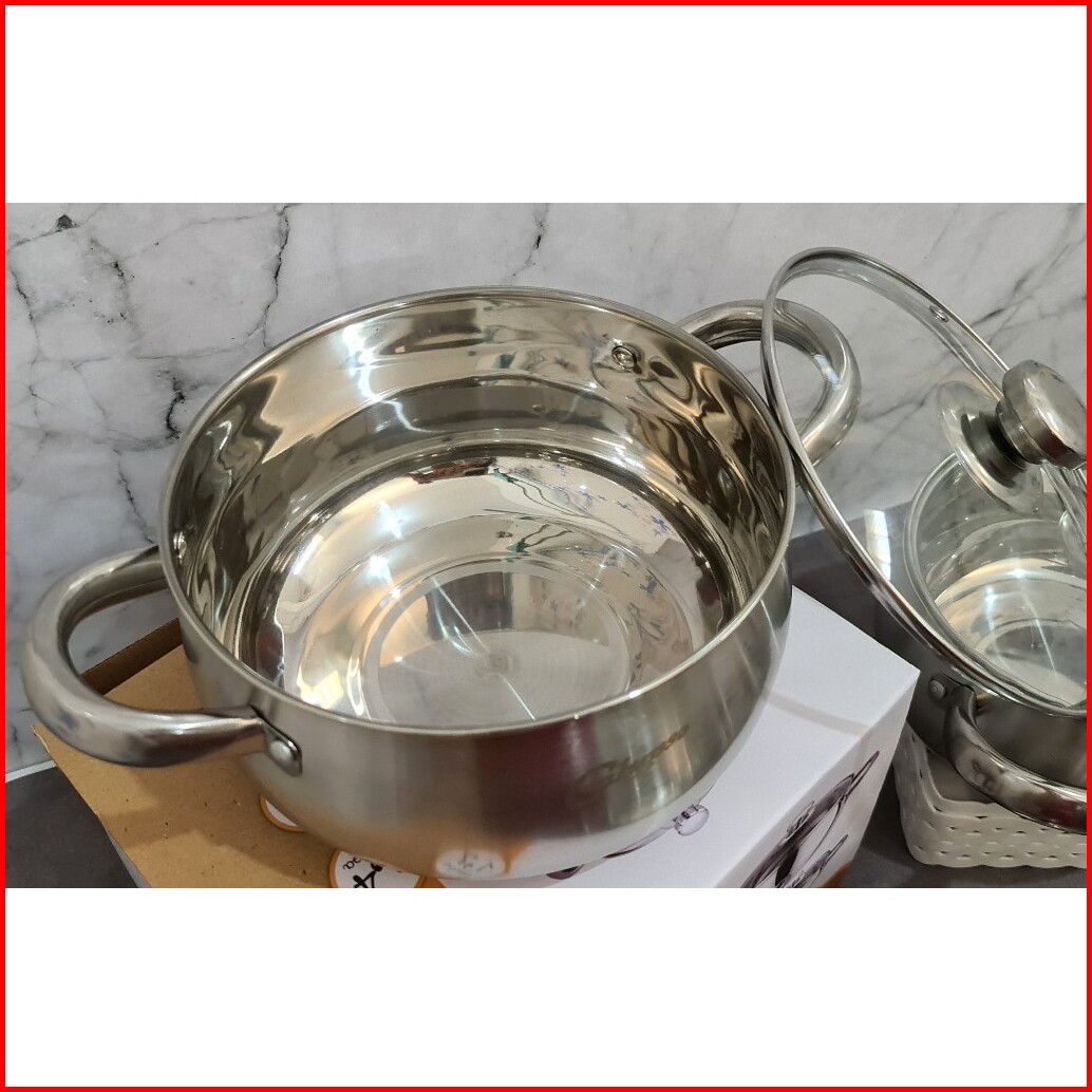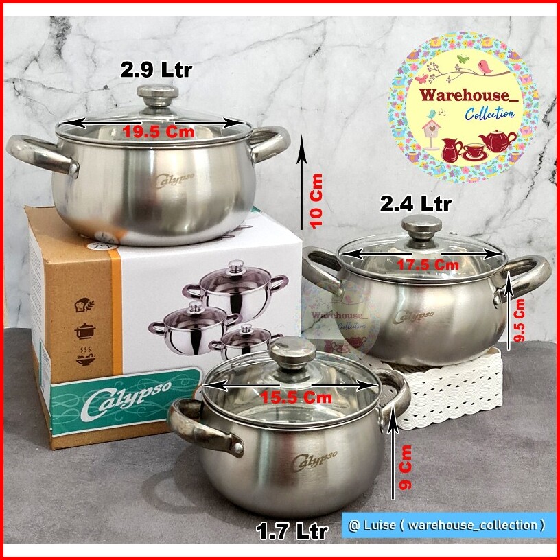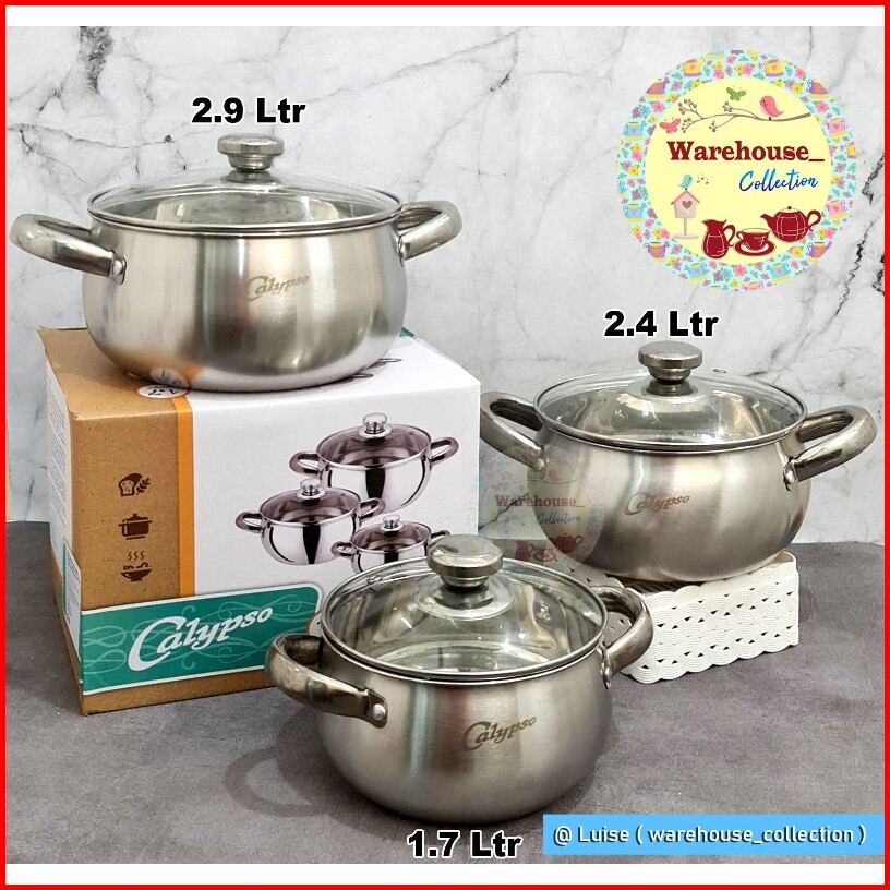 Panci Stainless Calypso Steel Tutup Kaca Size 16-24 Panci Di Jual Per-biji