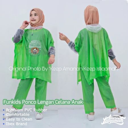 Funkids Ponco Lengan Celana Mantol Jas Hujan Setelan PVC / Jas Hujan Trasfaran / Mantel Hujan Anak /Setelan Mantel Motif