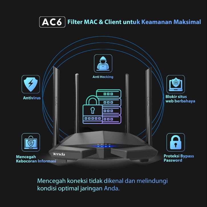AC6 WIFI5 CERDAS ROUTER HIGH SPEED AC1200 WIRELESS DUAL-BAND WITH SMART APP SUPPORT GUEST WIFI