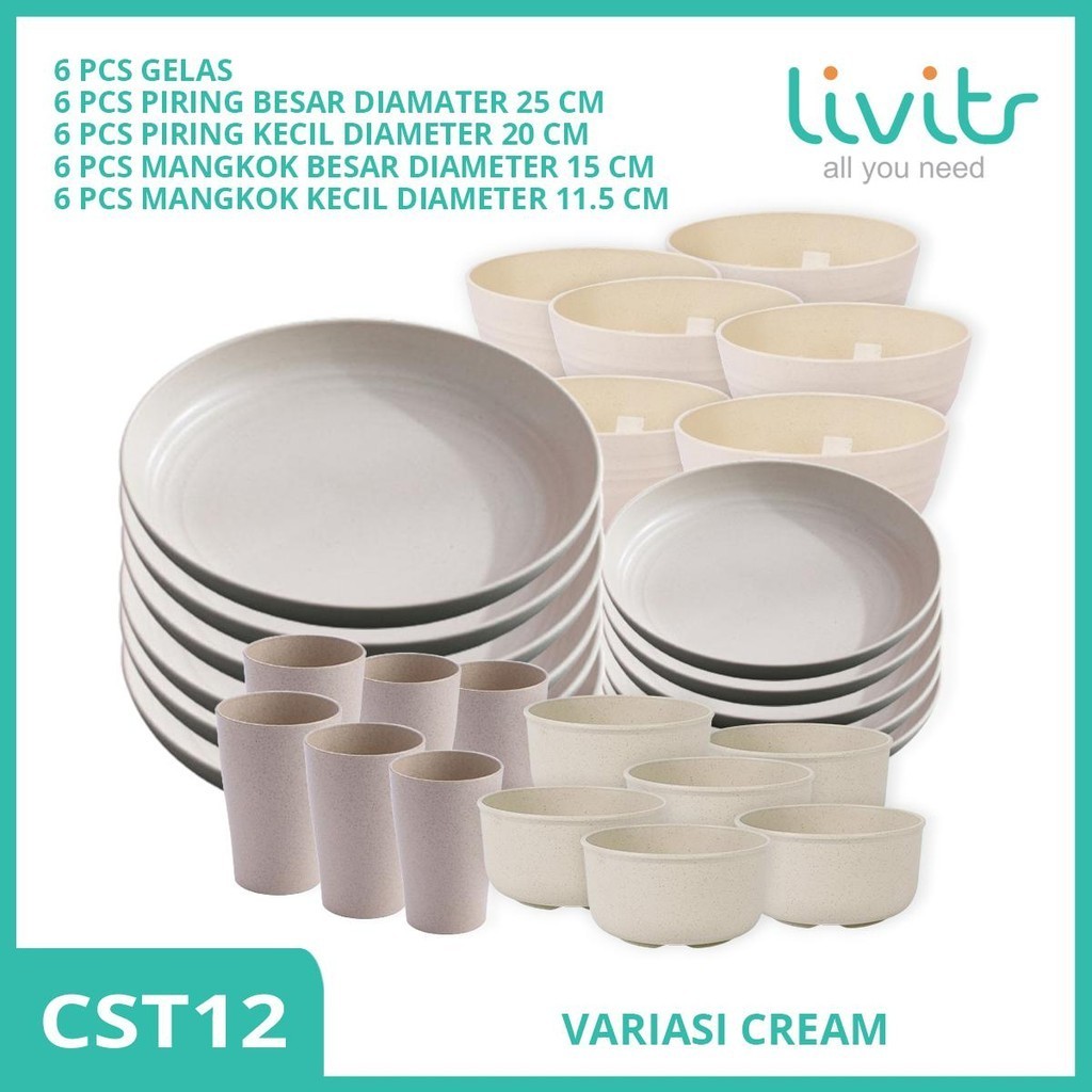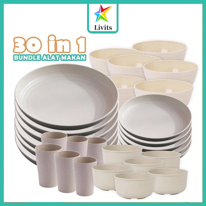 Set 30 Pcs Alat Makan 6 Pcs Piring Besar 6 Pcs Piring Kecil 6 Pcs Cangkir Minum 6 Pcs Mangkok Besar 6 Pcs Mangkok Kecil