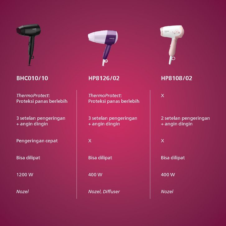 Philips | Hair Dryer EssentialCare | Pengering Rambut | Melindungi Rambut Dengan ThermoProtect Teknologi | Ungu | HP8126