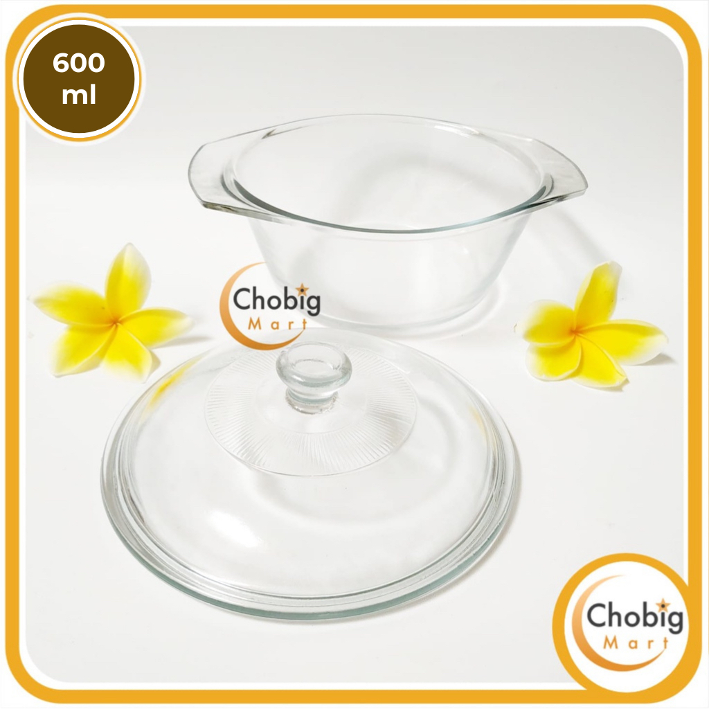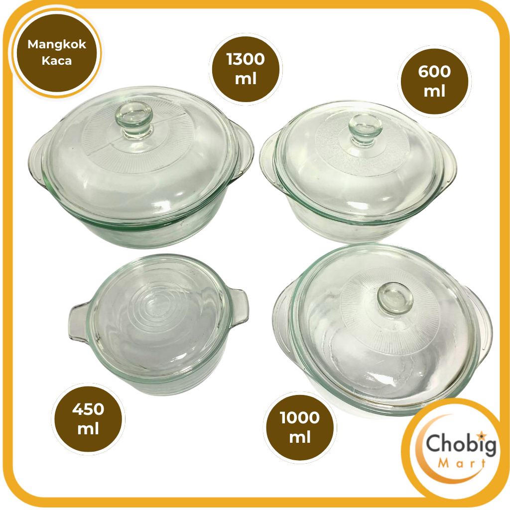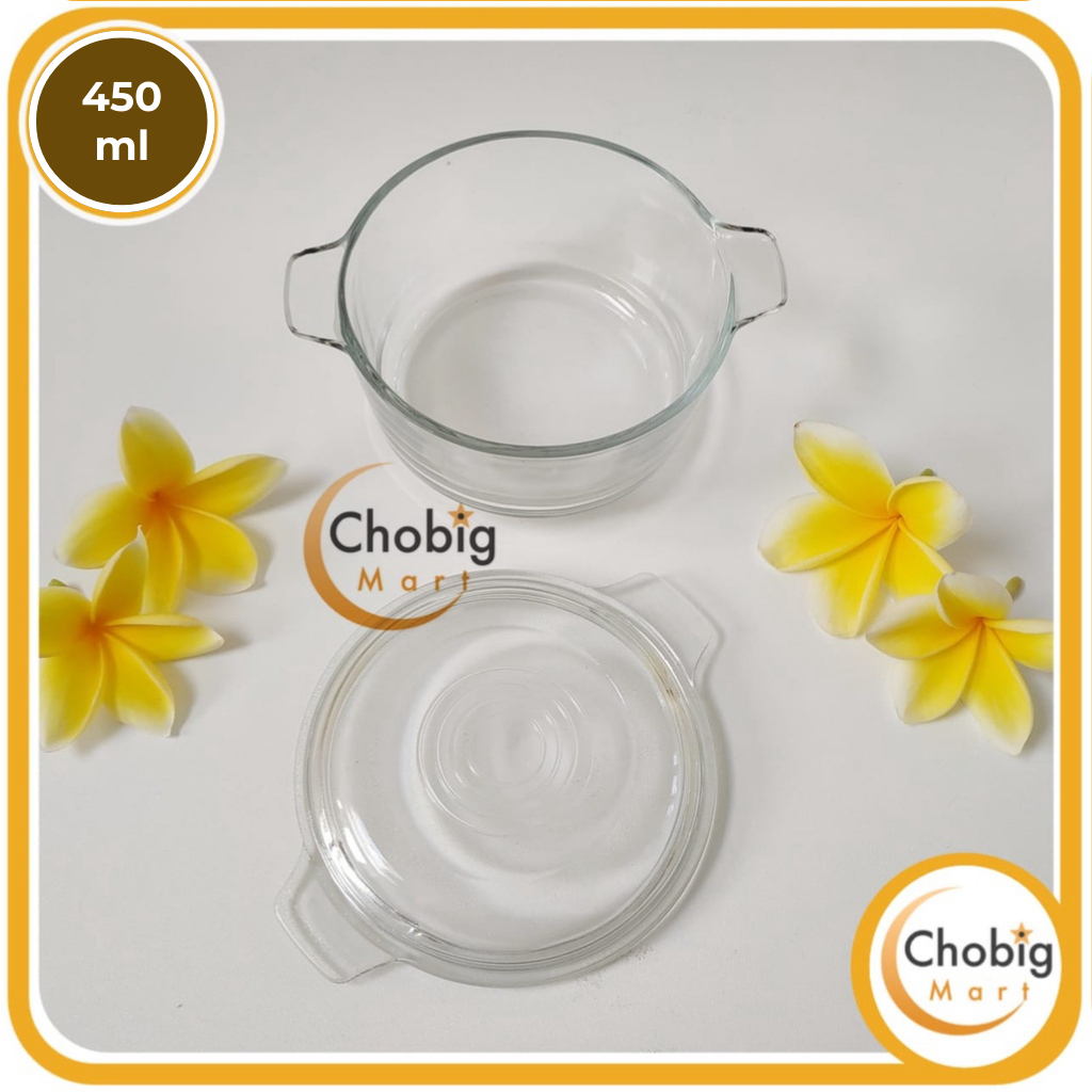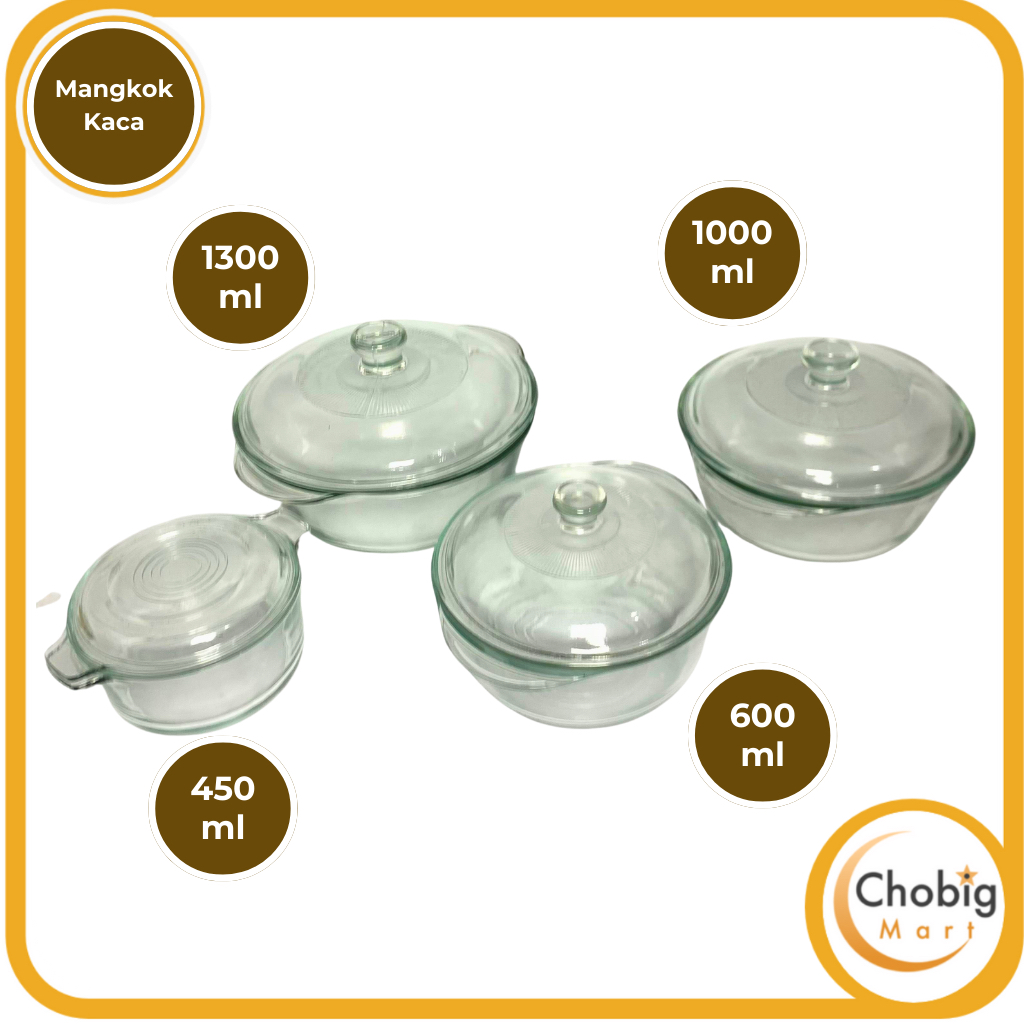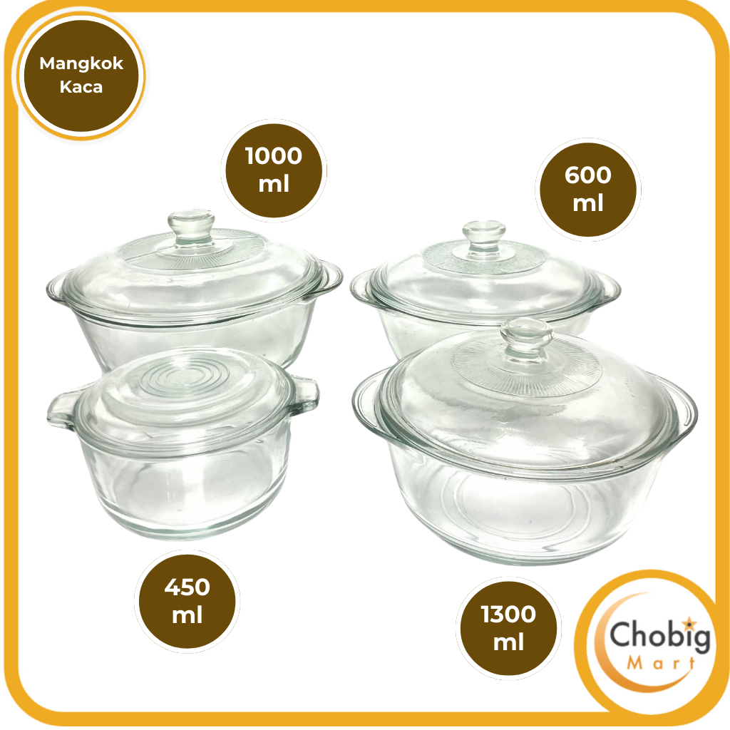 CHOBIG Mangkuk Transparan Polos 450ml 600ml 1000ml 1300ml Tutup Kaca Elegant / Mangkok Saji / Wadah Makanan / Premium Ae