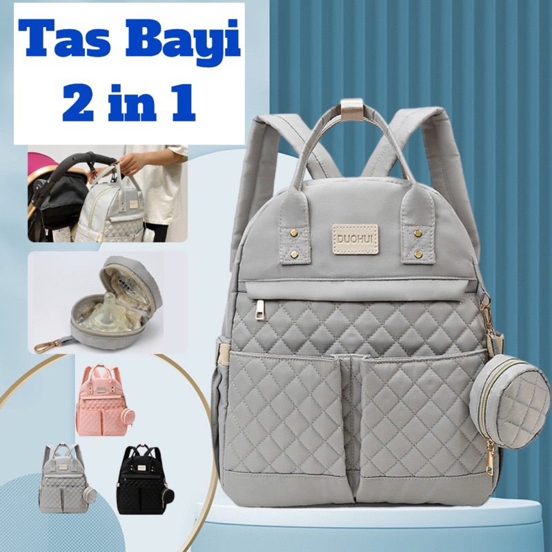 TAS BAYI 6031 - Ransel Bayi 2 In 1 “DUOHUI” Tas Perlengkapan Bayi Diaper Bag Tas Asi Popok Susu Pakaian Bayi - F