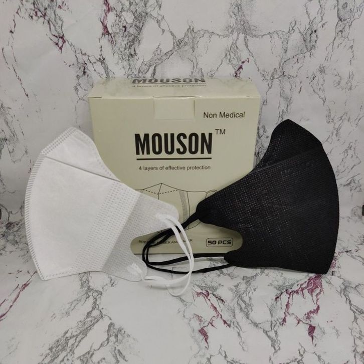 Masker Duckbill Mouson 4Ply Warna Hitam & Putih Isi 50 Pcs Per Kotak