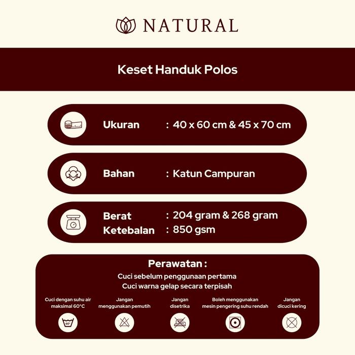 Keset Handuk 40 x 60 cm Keset Natural by Chalmer Keset Polos Keset Dapur Kamar Mandi