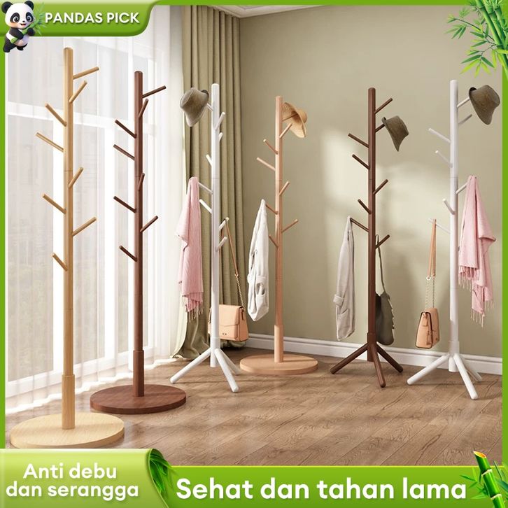 Rak Gantungan Berdiri Aesthetic Stand Hanger Rak Gantungan Baju Kayu Multifungsi Hanger Tunggal untuk Gantungan Topi